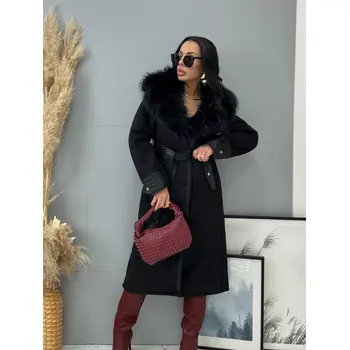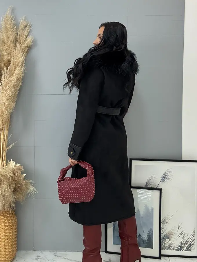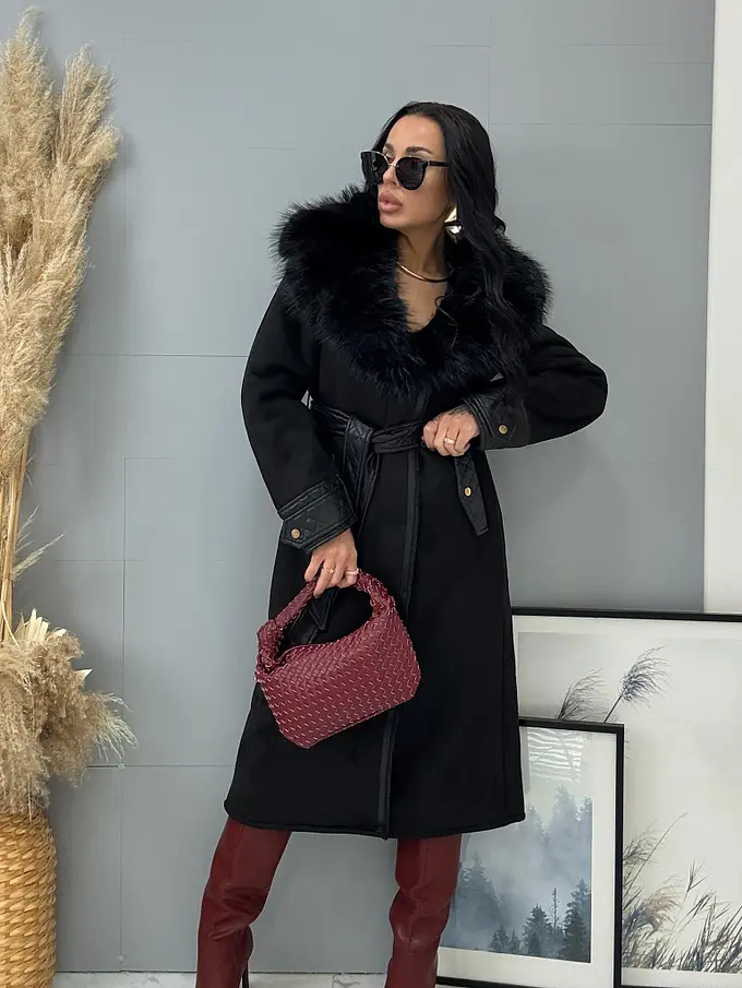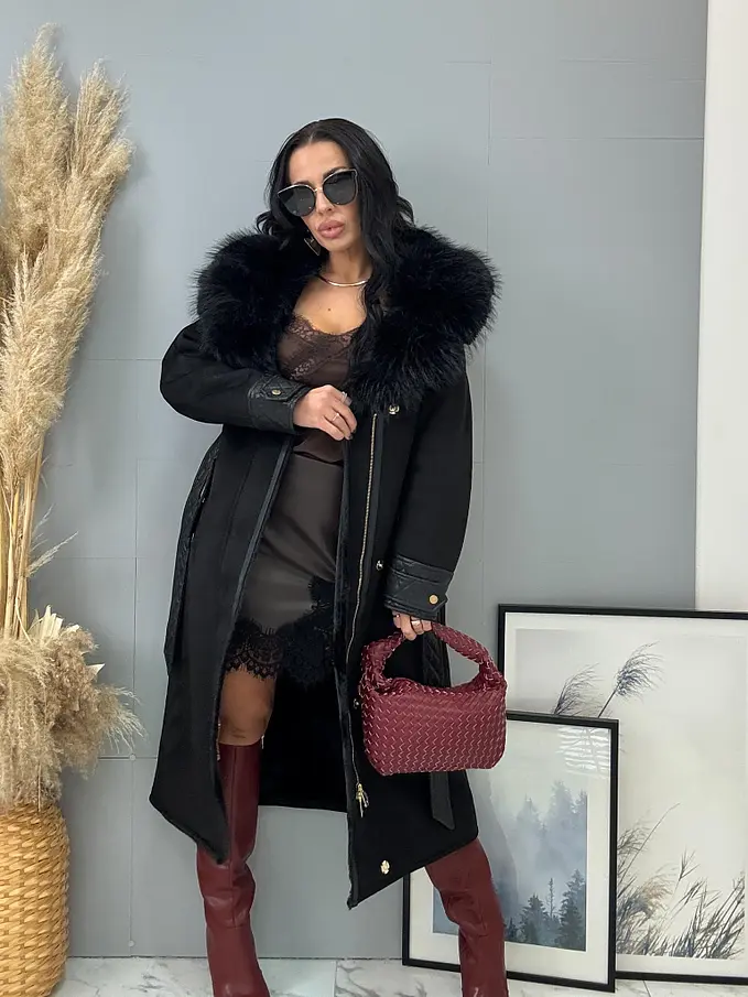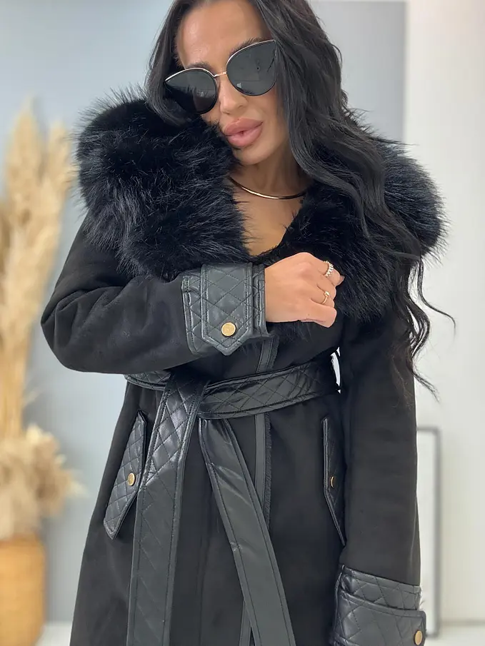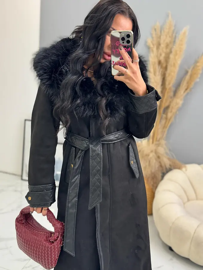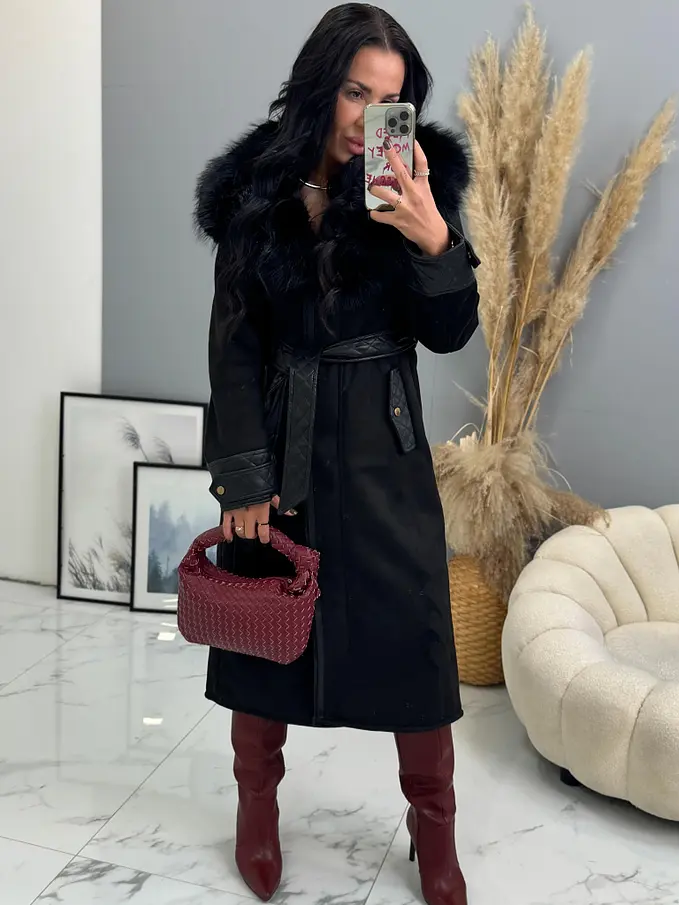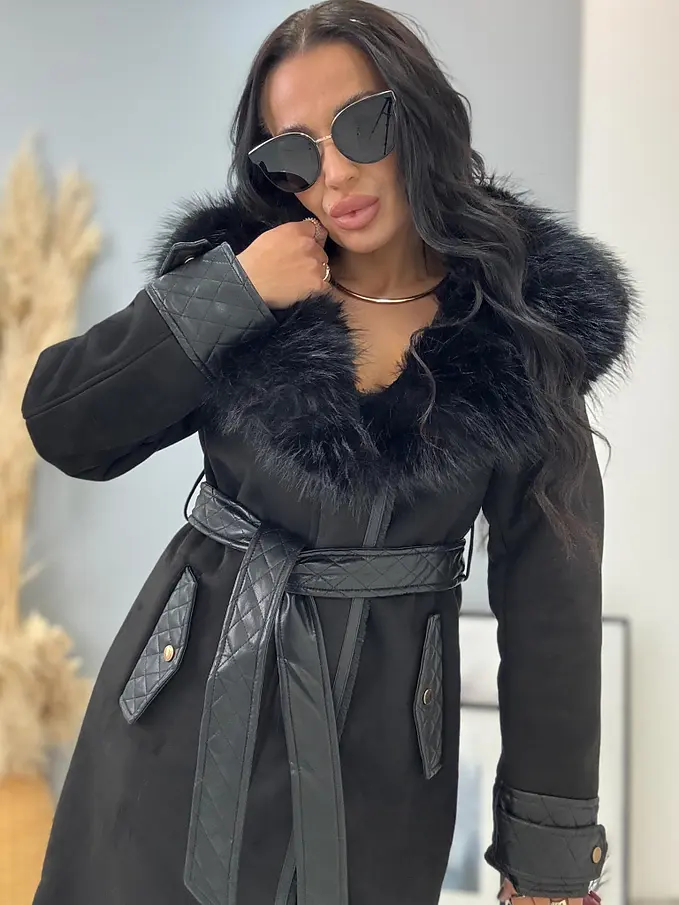Kombinovaná bunda s kožušinou a opaskom CARELA