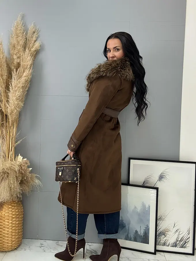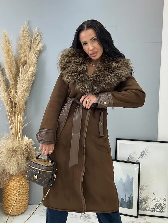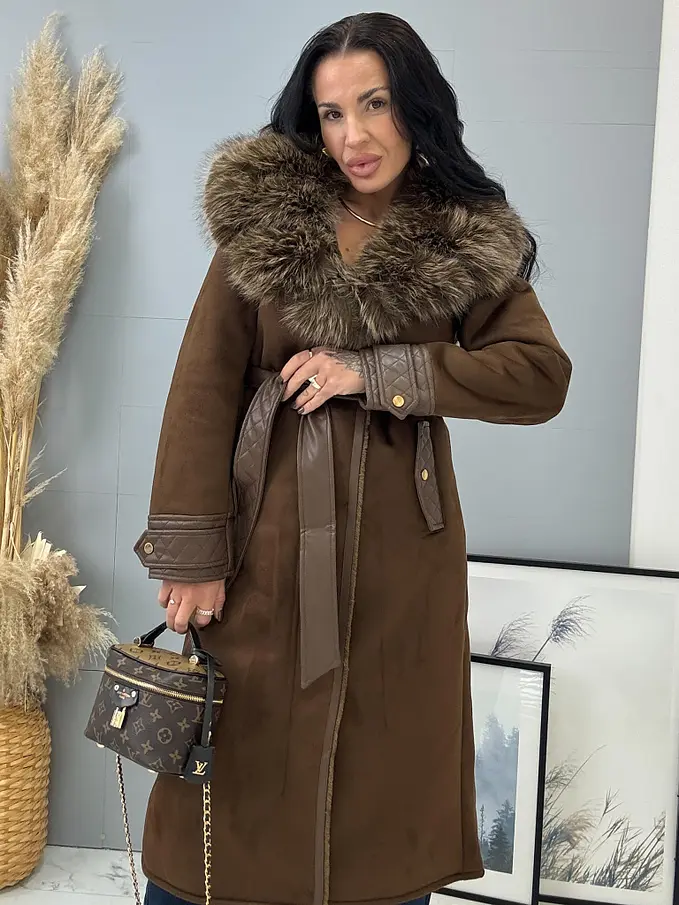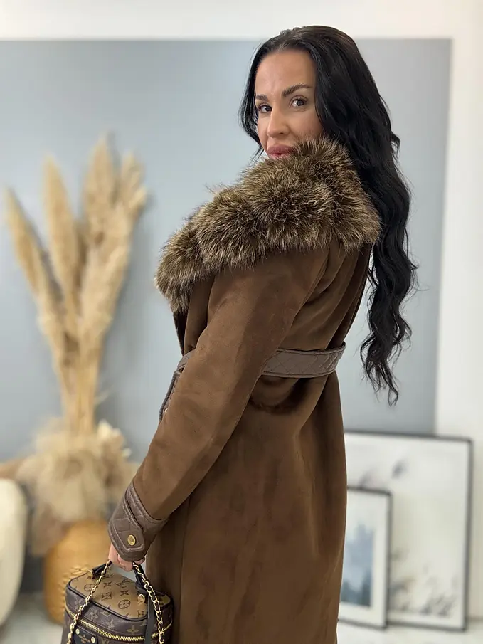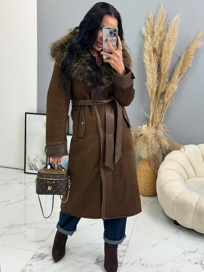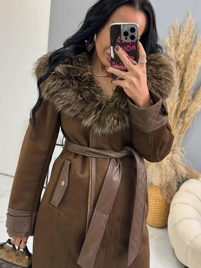 Kombinovaná bunda s kožušinou a opaskom CARELA