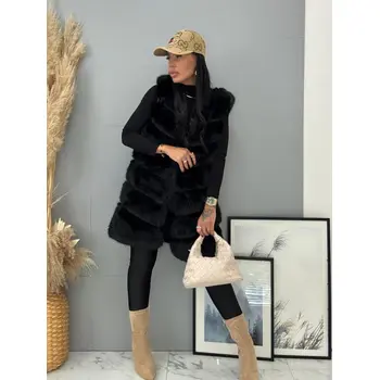Kožená vesta s kožušinou. S bočnými vreckami v prednej časti. So sponovým zapínaním.