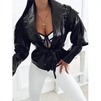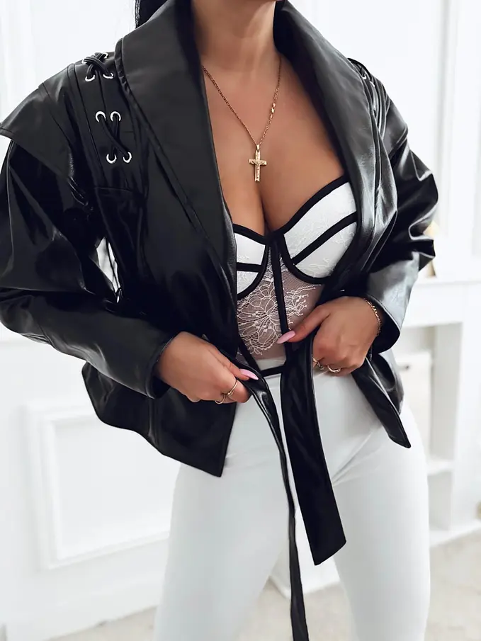 Koženková bunda s opaskom ARLETA