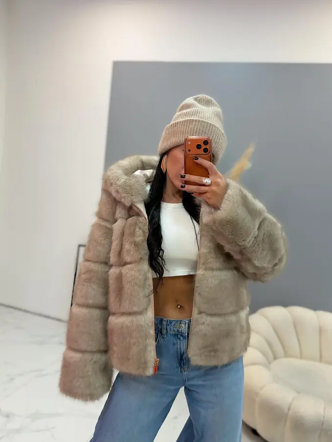 Premium kvalita. Materiál nie je elastický. Kabát sa zapína na zips. Kapucna je neoddeliteľná. Zips v zlatej farbe.