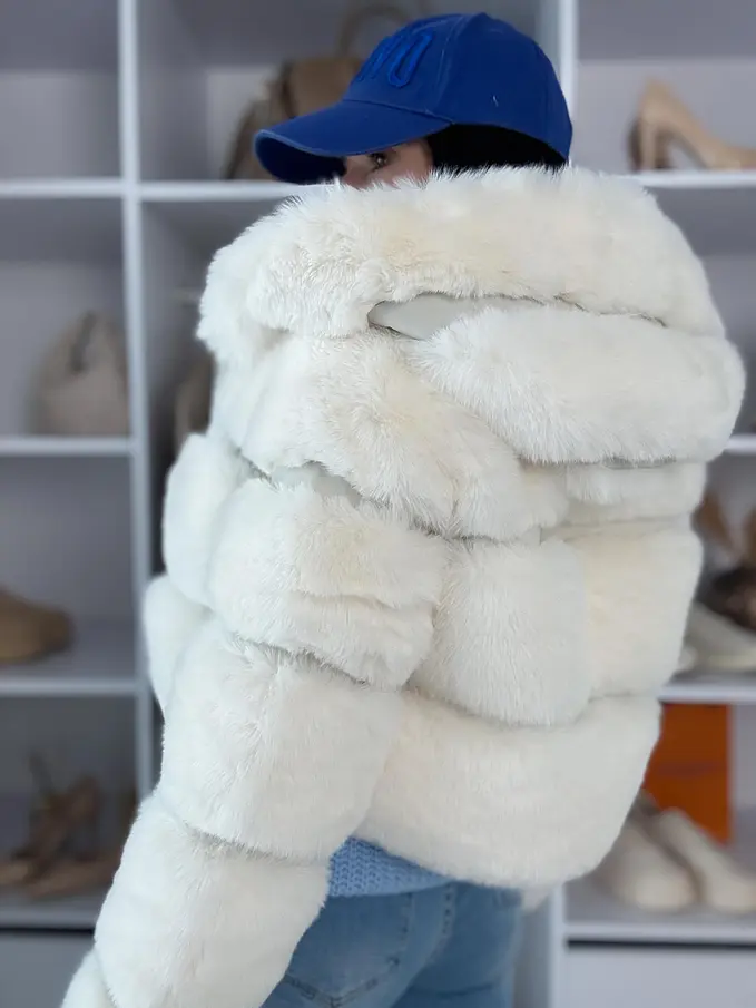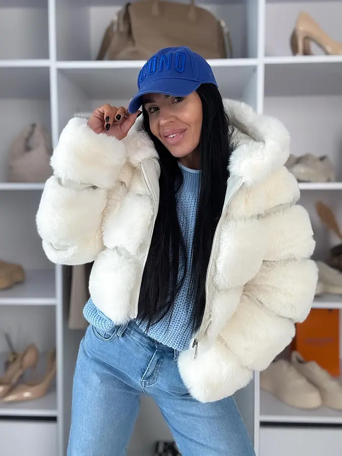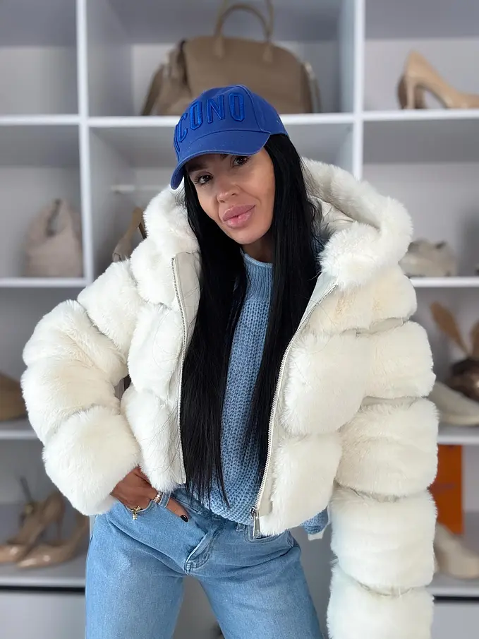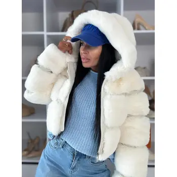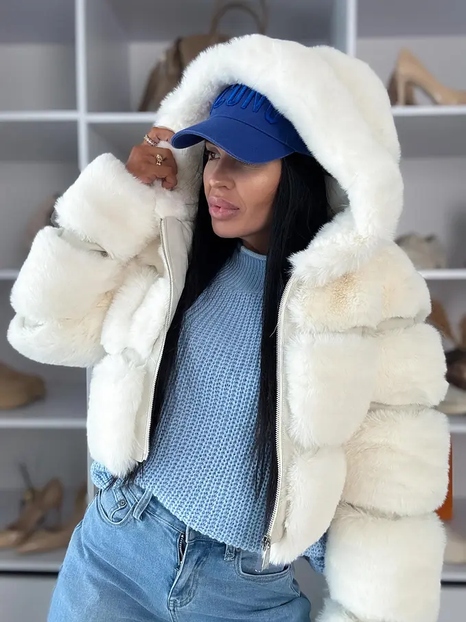Koženková kožušinová bunda s kapucňou GIANNA