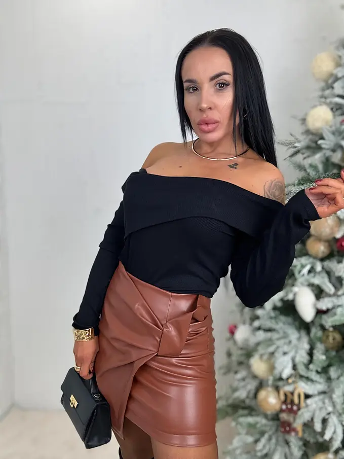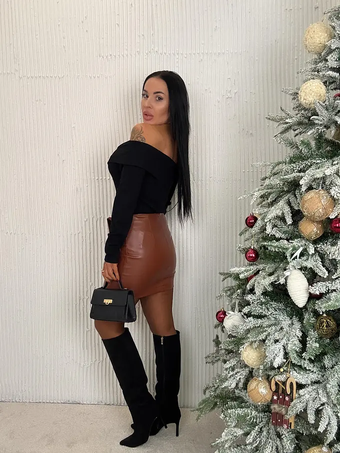 Koženková sukňa z novej kolekcie. Minimálne elastický materiál. Vzadu na zips.