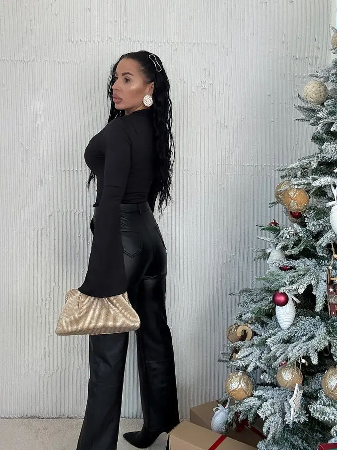 Modelka meria 164 cm a váži 57 kg. Má na sebe veľkosť S