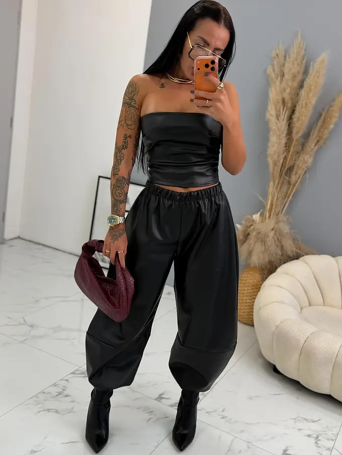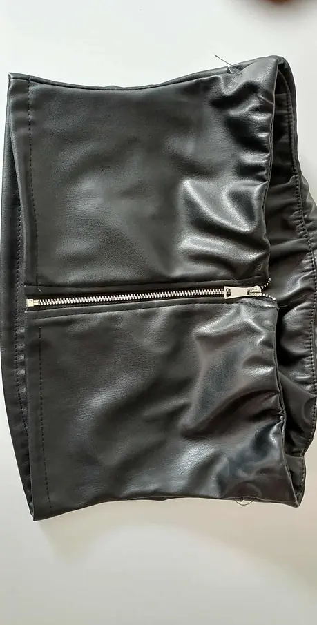Moderný koženkový crop top. Zapínanie vzadu na zips. Mierne elasická.