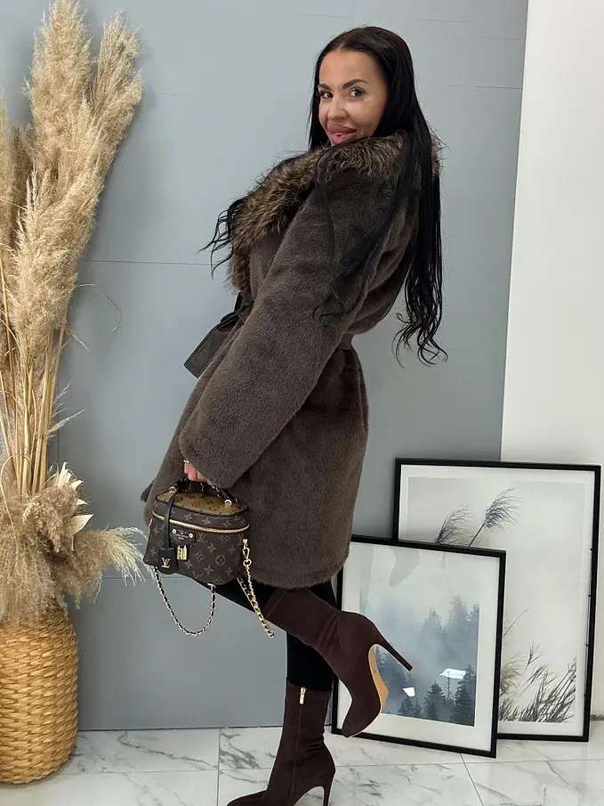 Premium kvalita. Materiál nie je elastický. Kabát sa zapína na zips a cvoky. Opasok je z koženky.