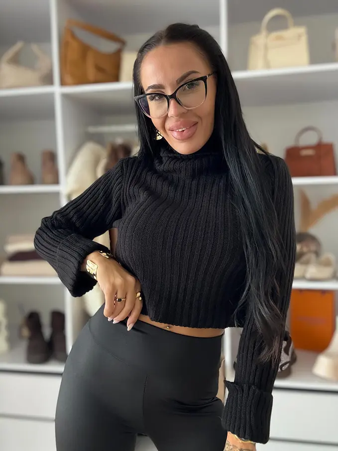 Modelka čiernovláska meria 164 cm a váži 57 kg.