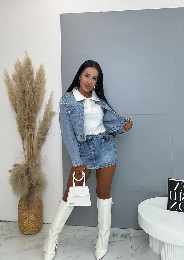 Krátky denim kabát s kamienkami EVELIN
