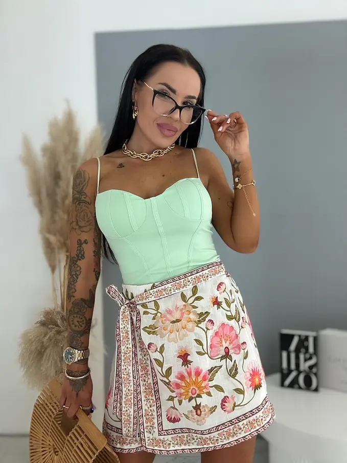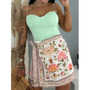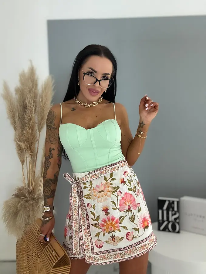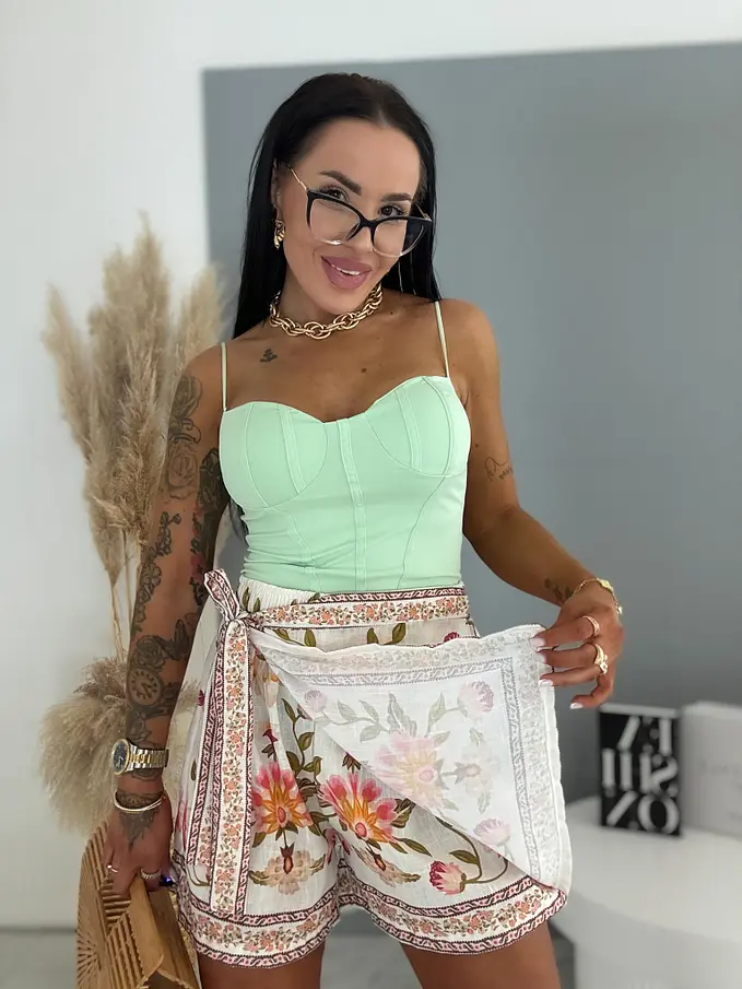 Kvetinová sukňošortka (skort) – ľahké, ženské a pohodlné letné oblečenie, ktoré spája elegantný vzhľad sukne s praktickosťou šortiek. Vďaka vzdušnému materiálu je ideálnou voľbou na teplejšie dni, či už na bežné nosenie, prechádzky alebo dovolenku.