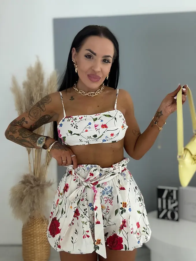 Kvetinové šortky v cibuľovom strihu s topom FLORE