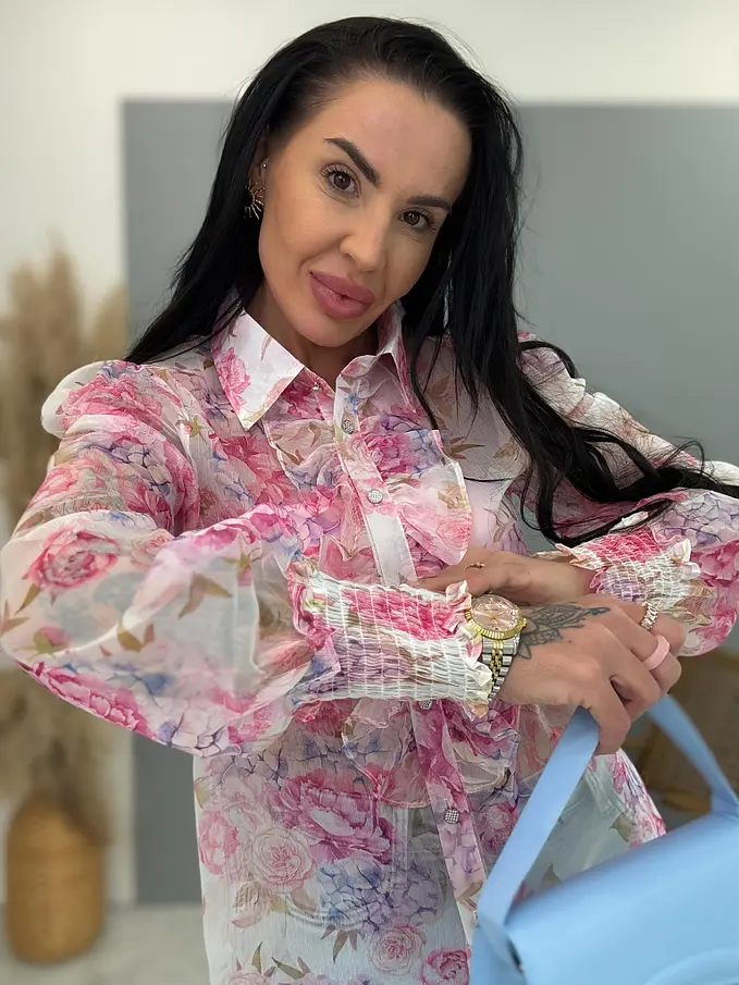 Kvetovaná blúzka ozdobnou sponou s kamienkami ROSE