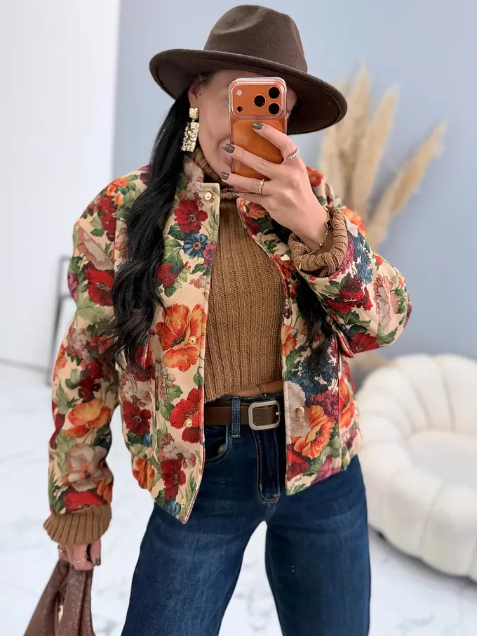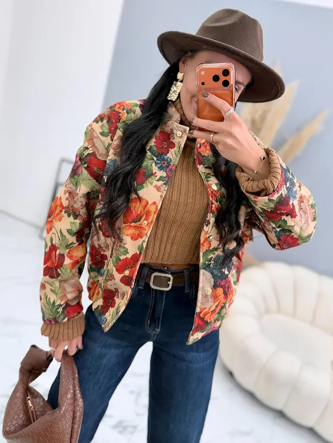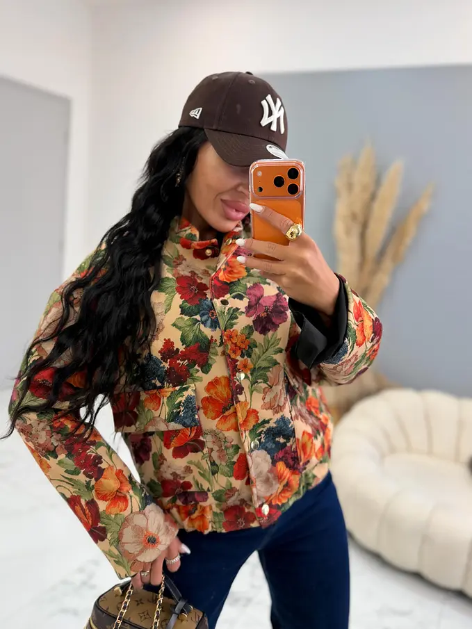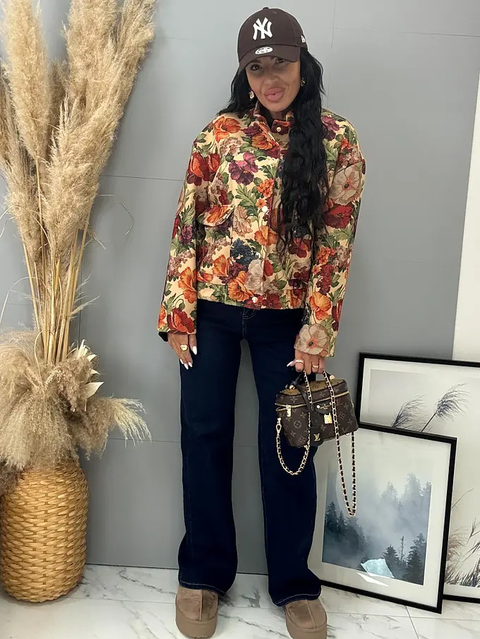 Kabát je vyrobený z príjemného materiálu, zapína sa zlatými gombíkmi a má 2 použiteľné vrecká.