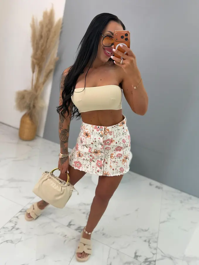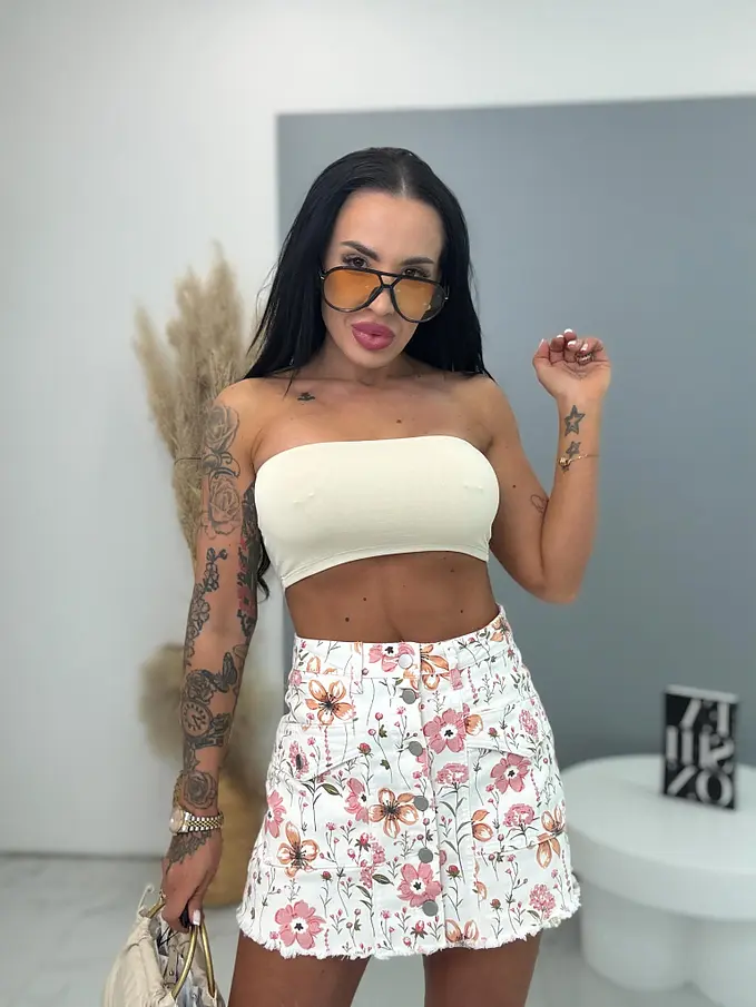 Kvetovaný denimový skort s gombíkmi vpredu NANNY