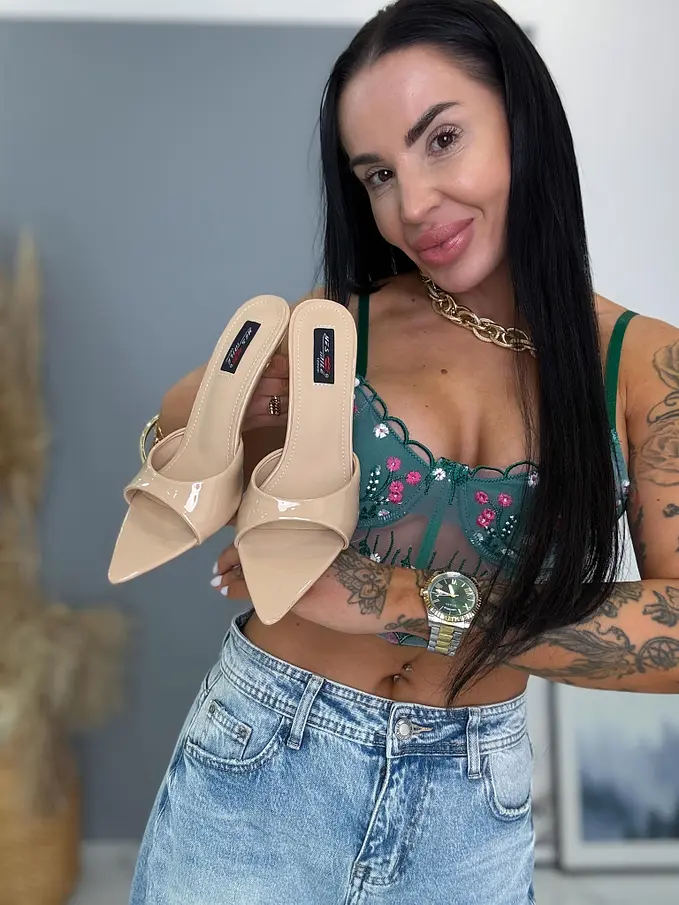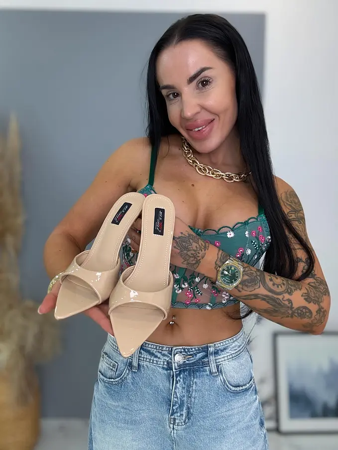 Veľkosti zodpovedajú klasickému európskemu číslovaniu. Modelka nosí veľkosť 38 a rovnakú veľkosť mala obutú i pri fotení.