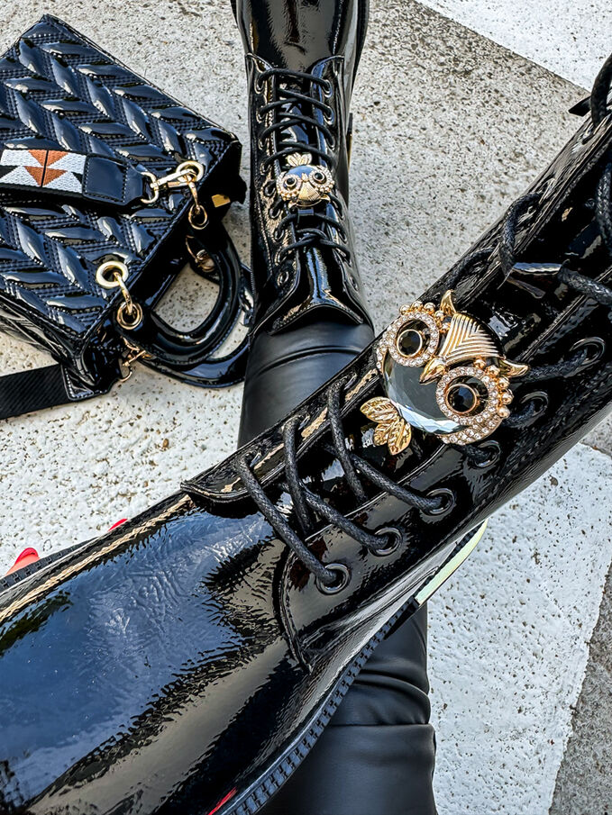 Štýlová aj v sychravom počasí? Čižmy perfektne doplnia napríklad slim džínsy a vestu z kožušinky. Doplnky majú striebornú farbu. Čižmy sú mierne tateplené.