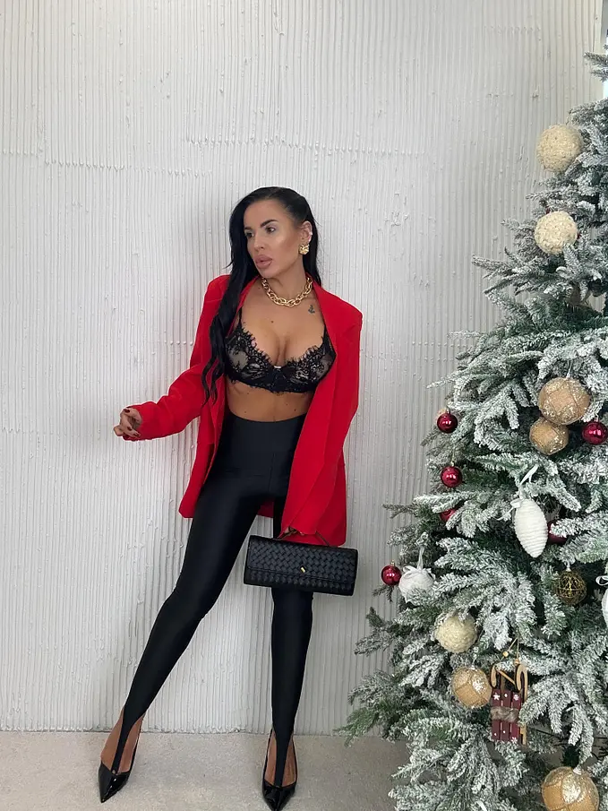 Modelka meria 164 cm a váži 57 kg. Nosí veľkosť S.