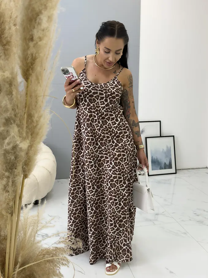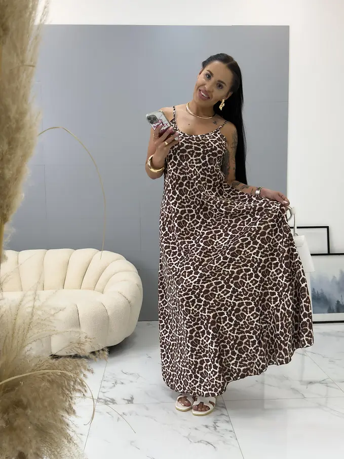 Leopardie saténové maxi šaty FELICIA