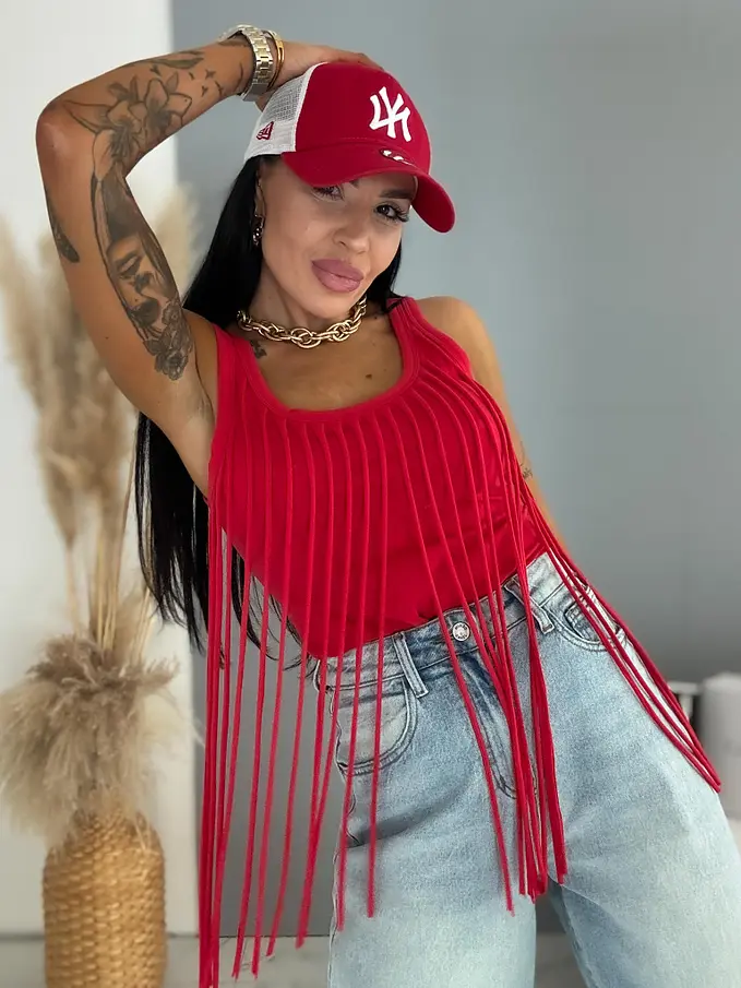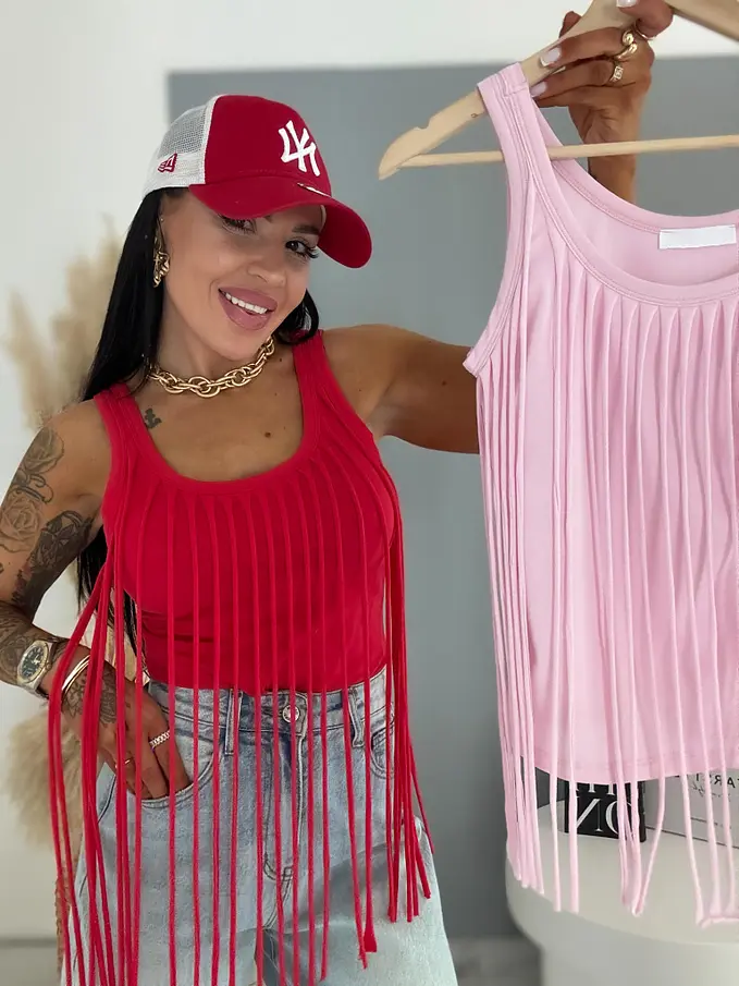 Prémiová kvalita z Talianska. Letné dámske tielko , vyrobené z pružného materiálu, ktorý poskytuje pohodlné a štýlové letné nosenie.