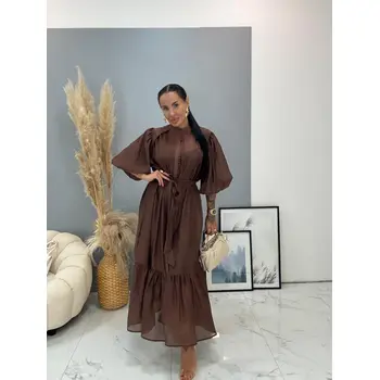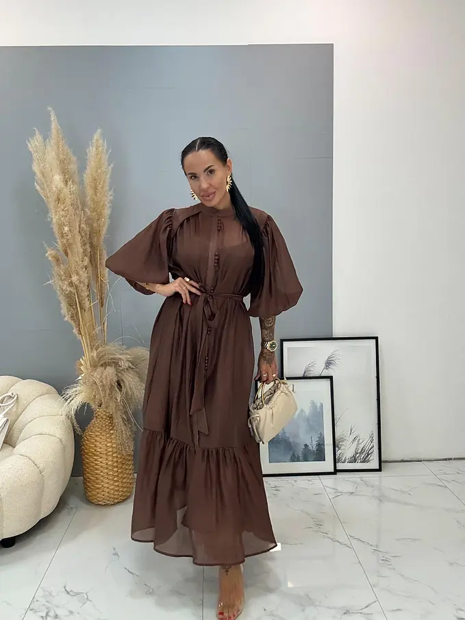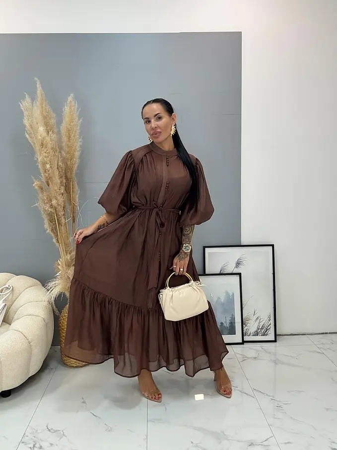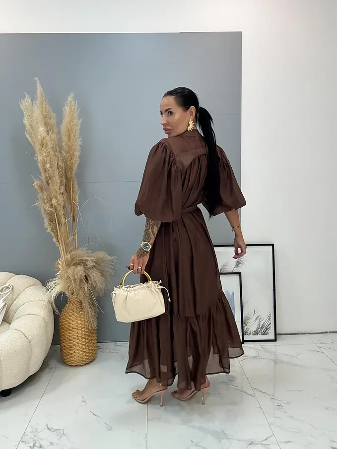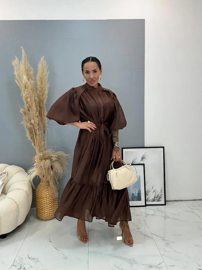 Premium kvalita. Lyocellové midi šaty s opaskom a nadýchanými rukávmi