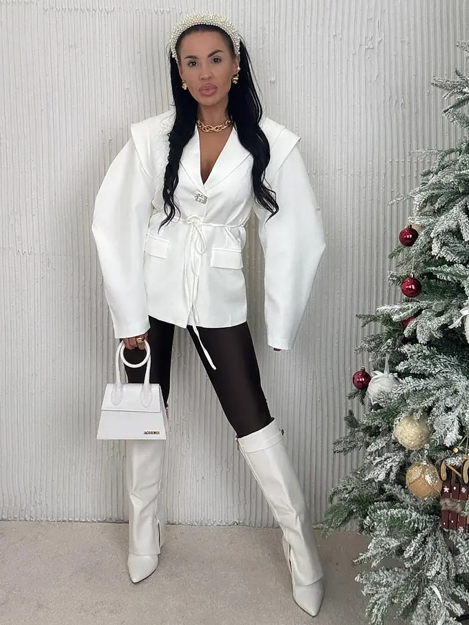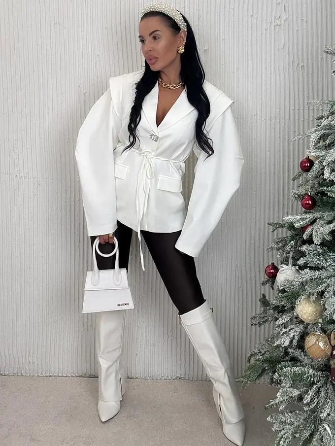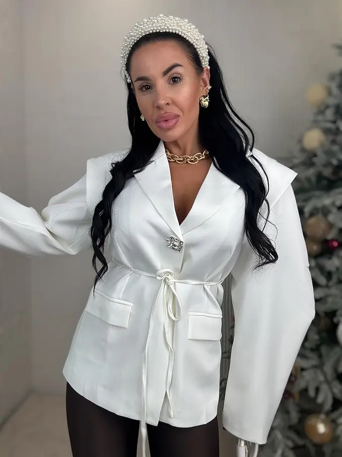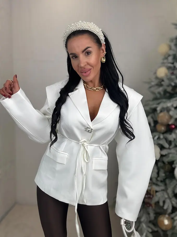 Prémium kvalita. Materiál je veľmi príjemný, avšak nie je elastický. Je podšitý. Brošňa má striebornú farbu.