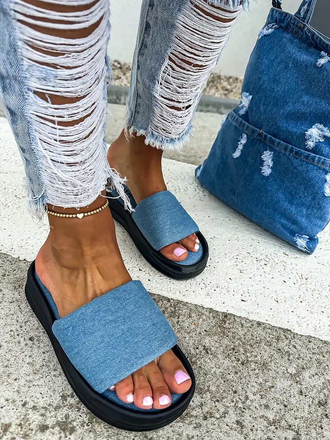 Modré denim šľapky OLIVIA-