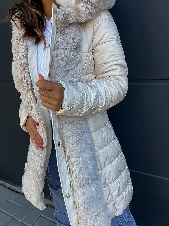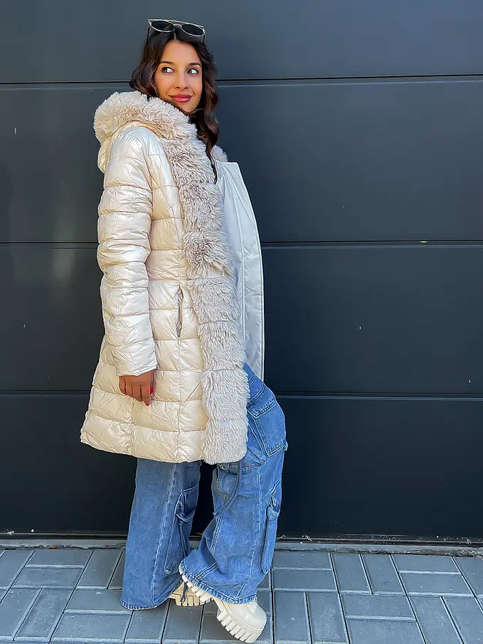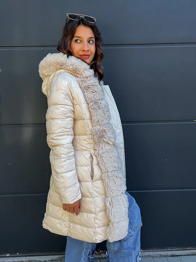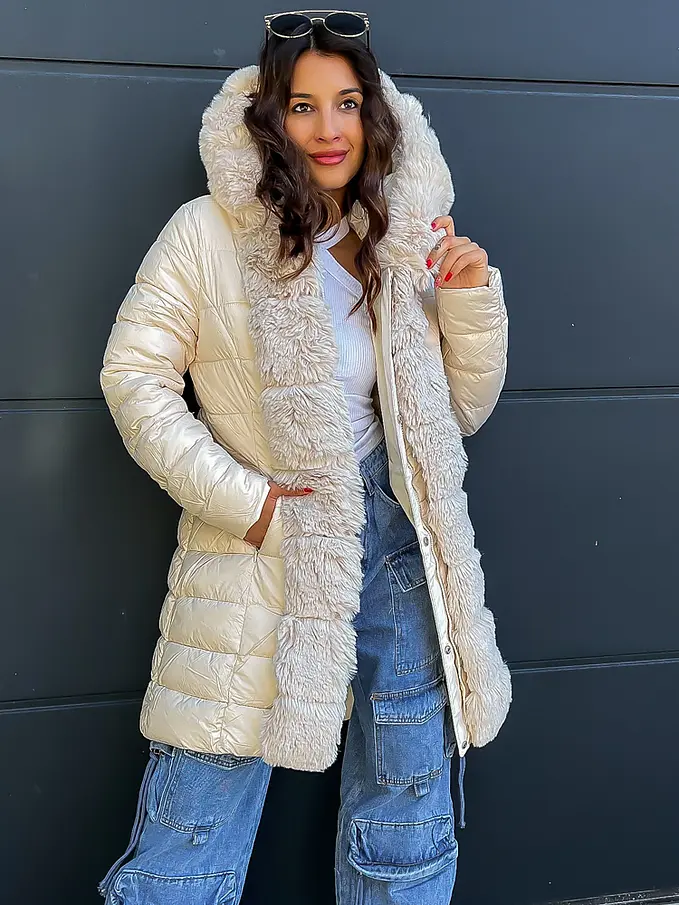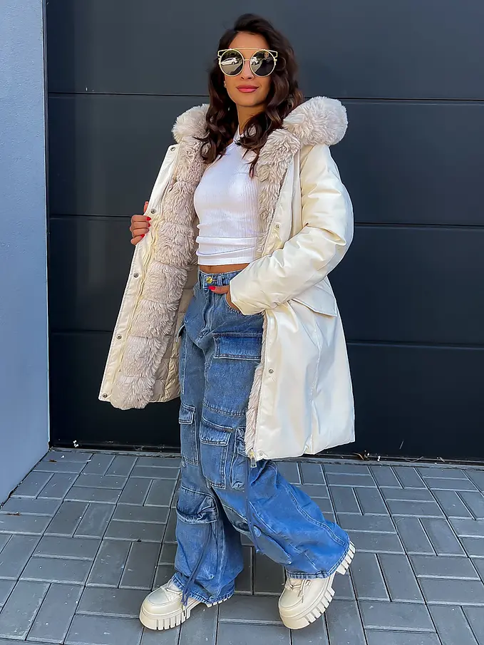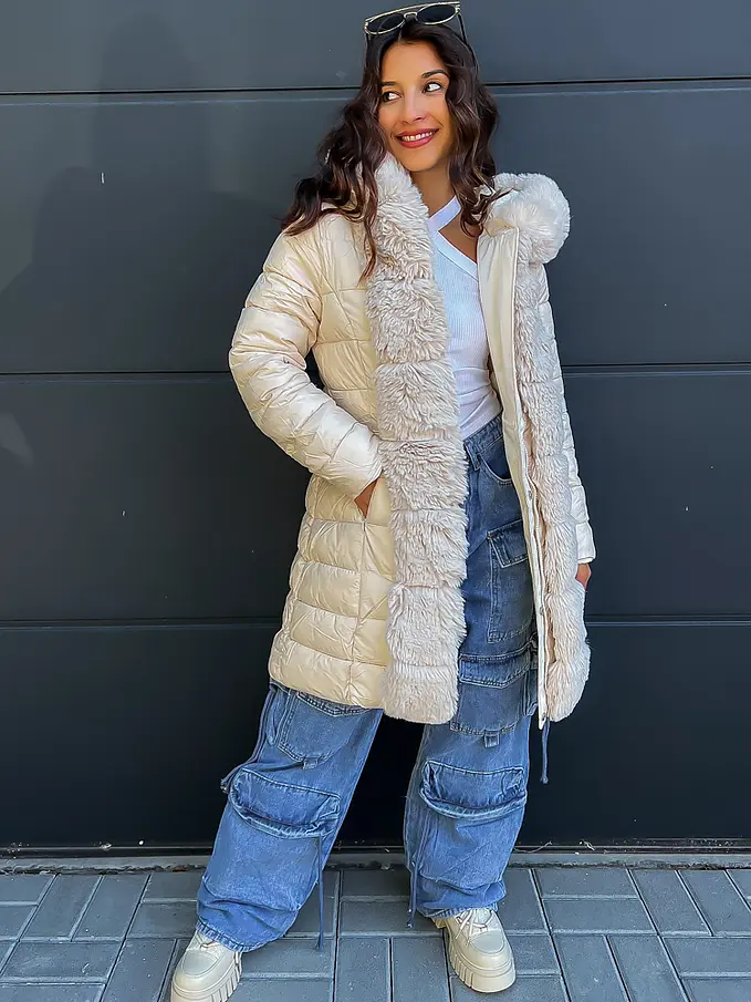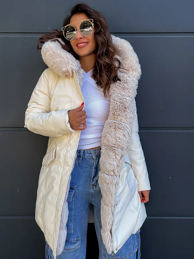 Štýlová na každý deň! Moderný kabát v ktorom budete štýlová. S vreckami. Kapucňa nie je odnímateľná, ale kožušina je. Jedna strana bundy je štepovaná.