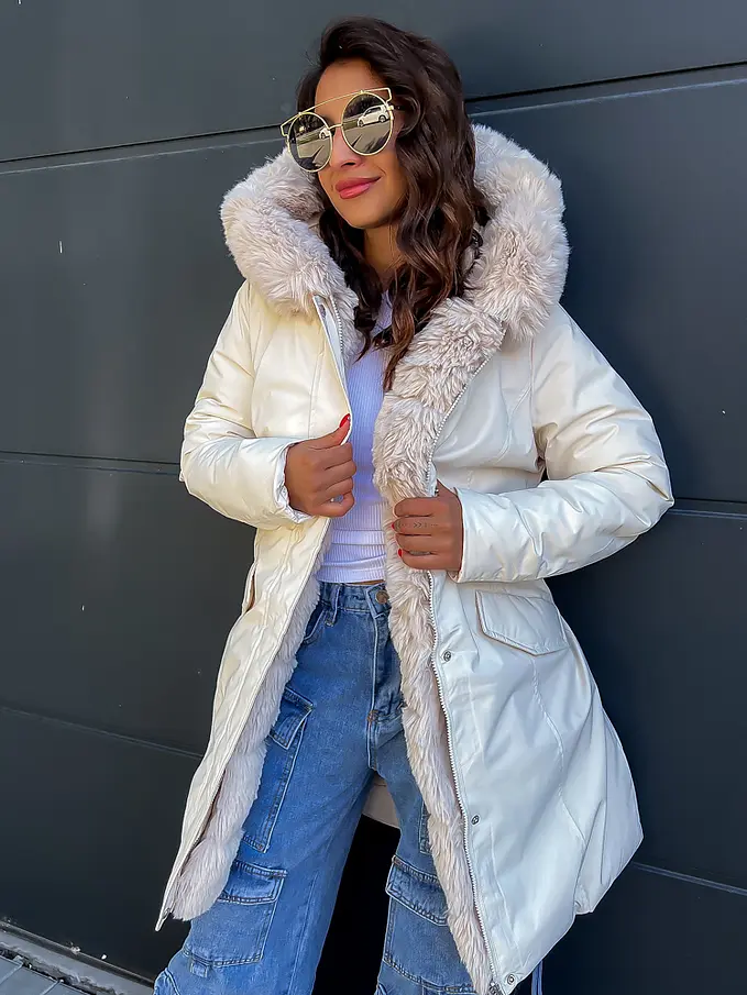 Obojstranná bunda s kožušinkou a kapucňou ESTEFANY