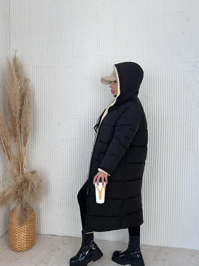 Štýlová na každý deň! Moderný kabát je výrazná vďaka strihu. Kapucňa nie je odnímateľná.