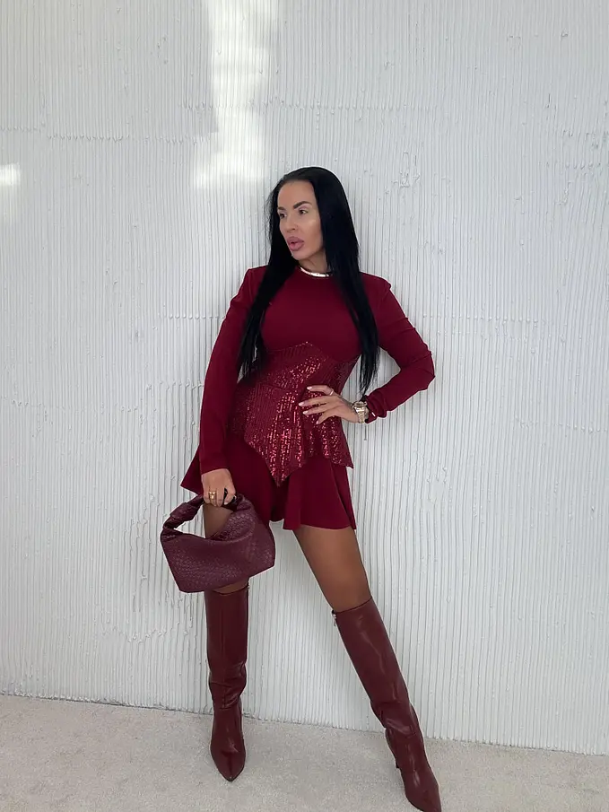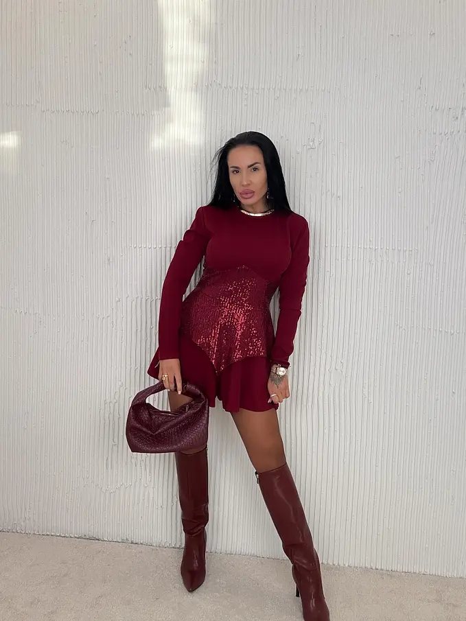 Modelka čiernovláska meria 164 cm a váži 57 kg.