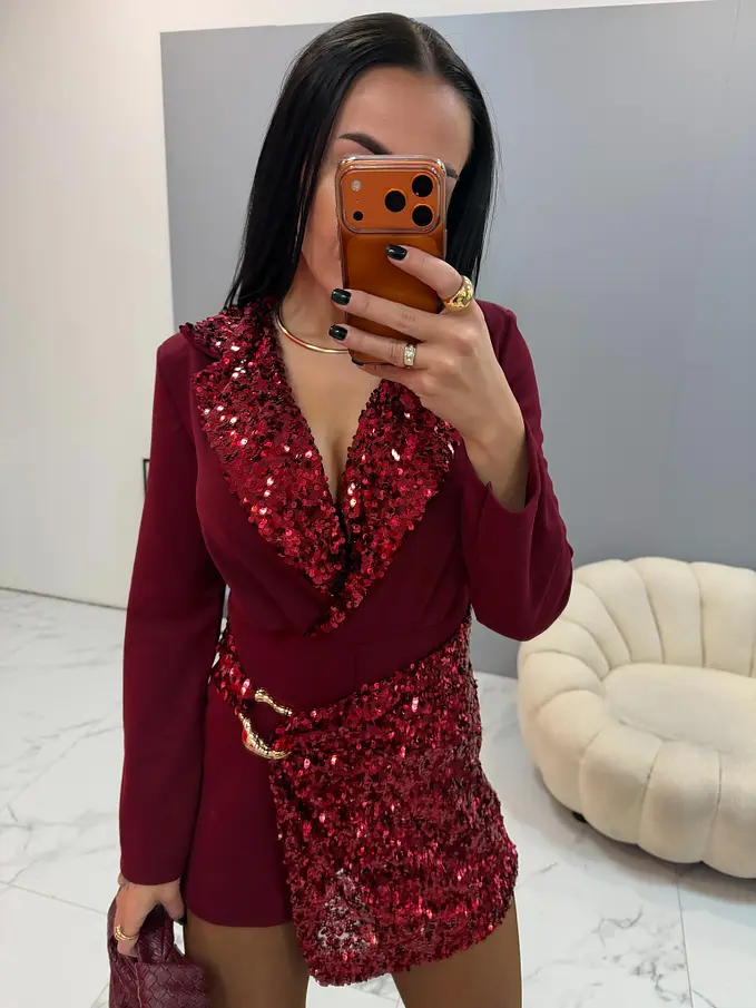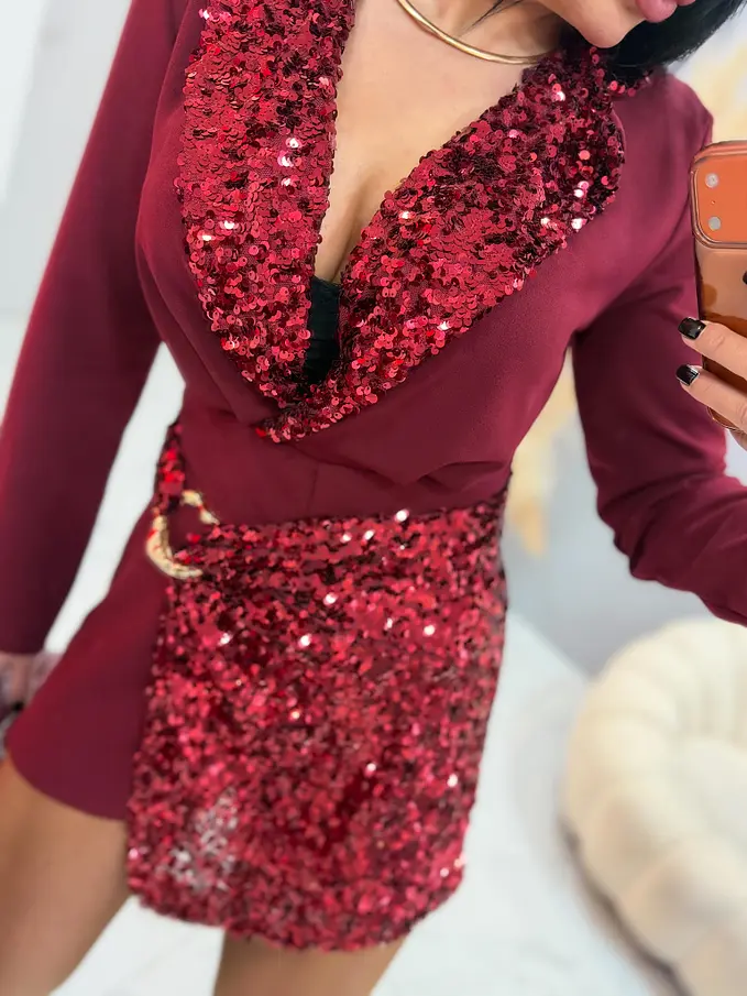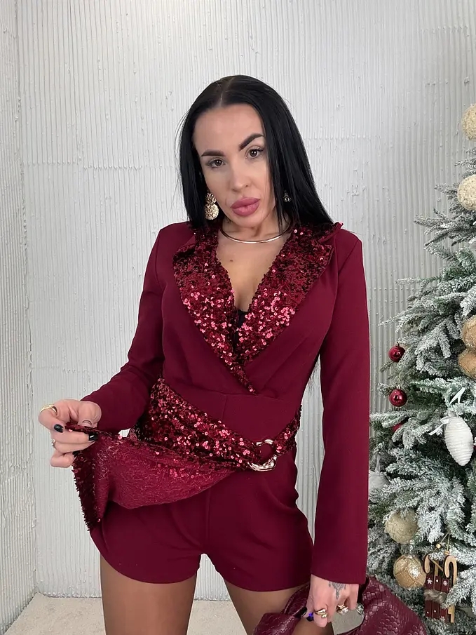 Overal zdobený flitrami s vypchávkami na ramenách CRISIA
