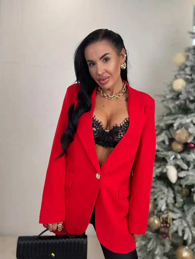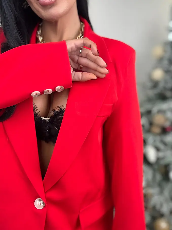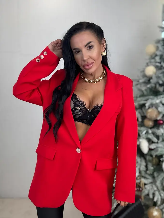 Dámske sako z príjemného materiálu. Materiál nie je elastický. Sako sa zapína na gombíky. Má vypchávky a je podšívané.