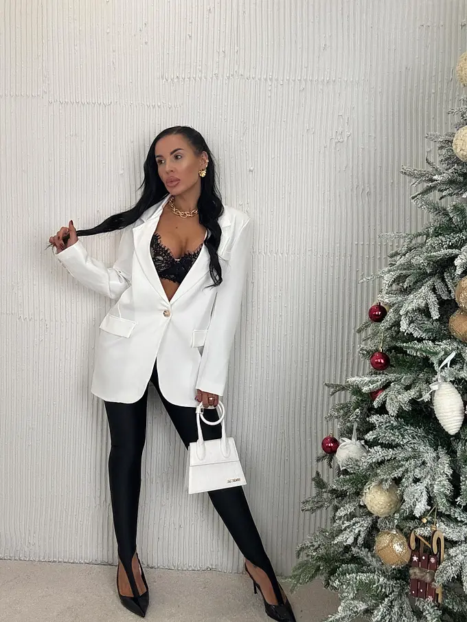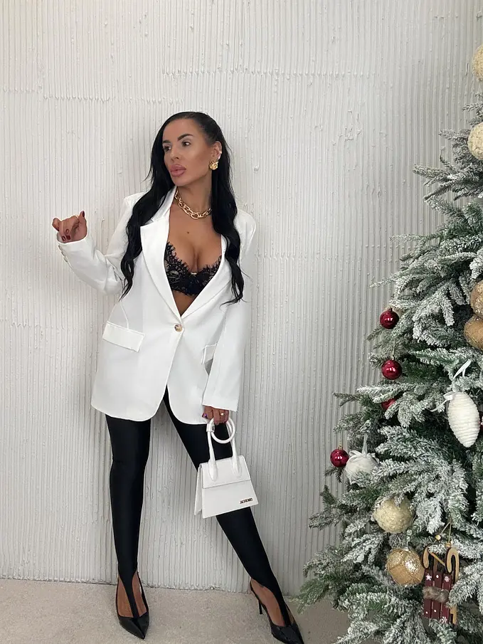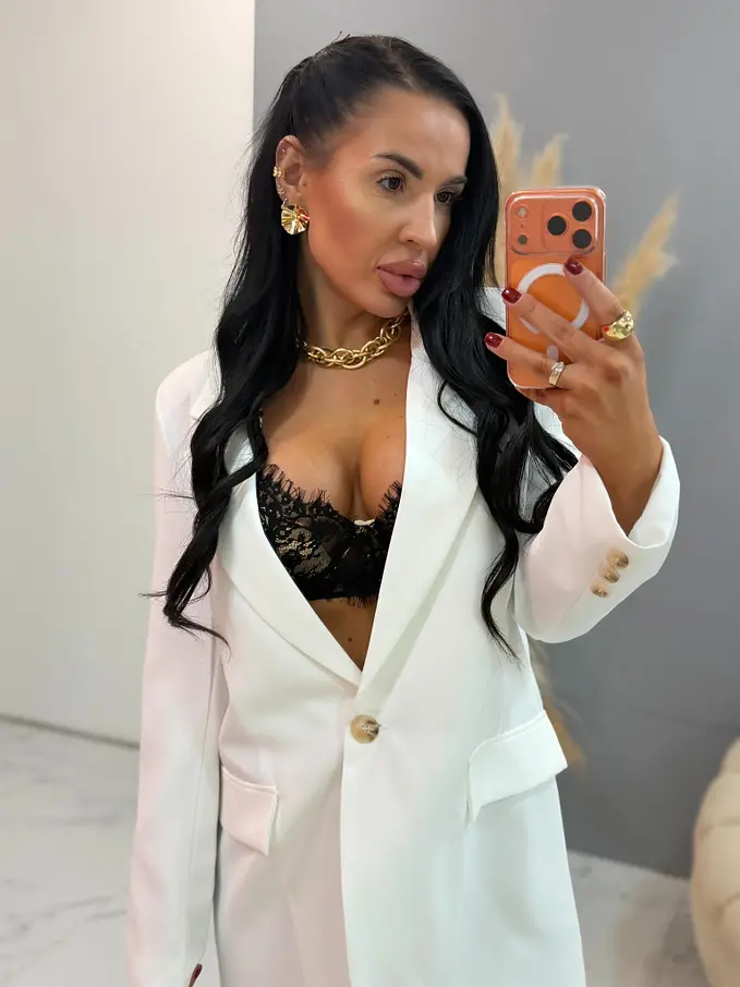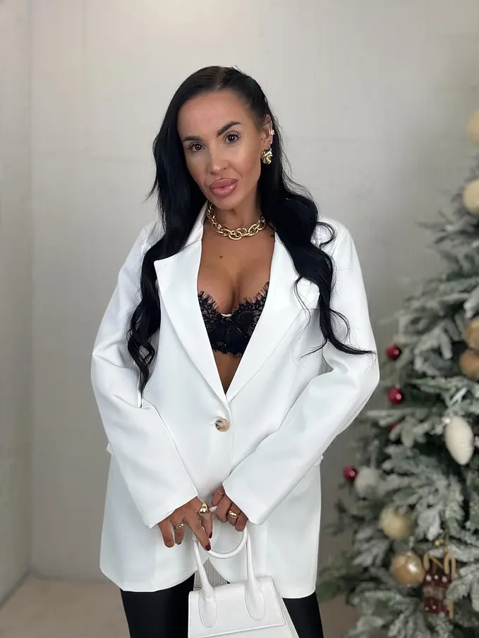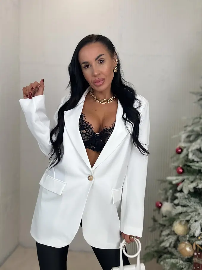 Dámske sako z príjemného materiálu. Materiál nie je elastický. Sako sa zapína na gombíky. Má vypchávky a je podšívané.