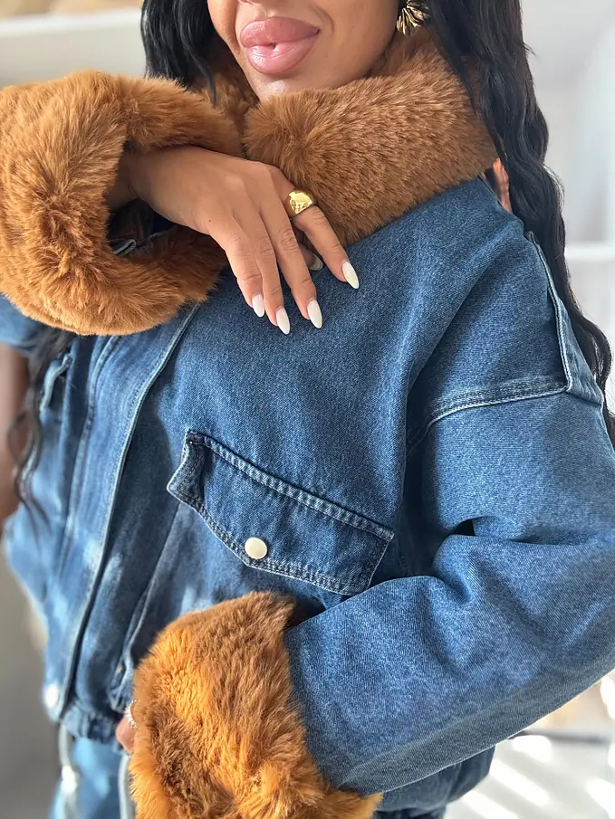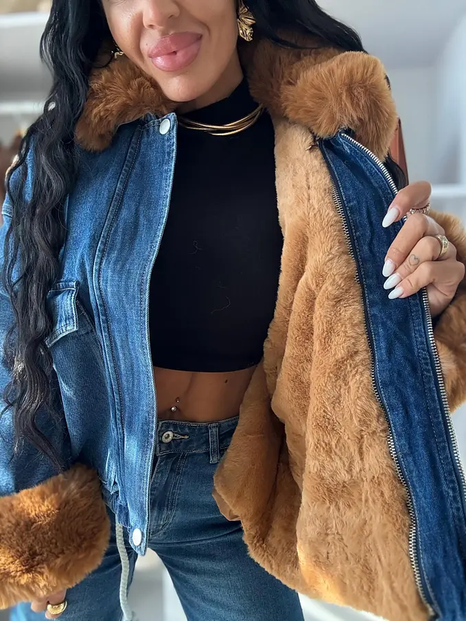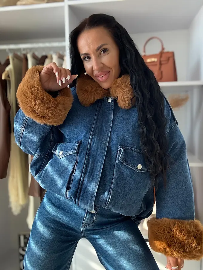 Štýlová na každý deň! Bunda s odnímateľným kožušinovým lemom na golieri a rukávoch. Podšitý mäkkým, príjemným kožúškom ktorý dá sa odzipsovať. Detaily sú v striebornej farbe. S prednými vreckami a dolu dá sa stiahnuť.