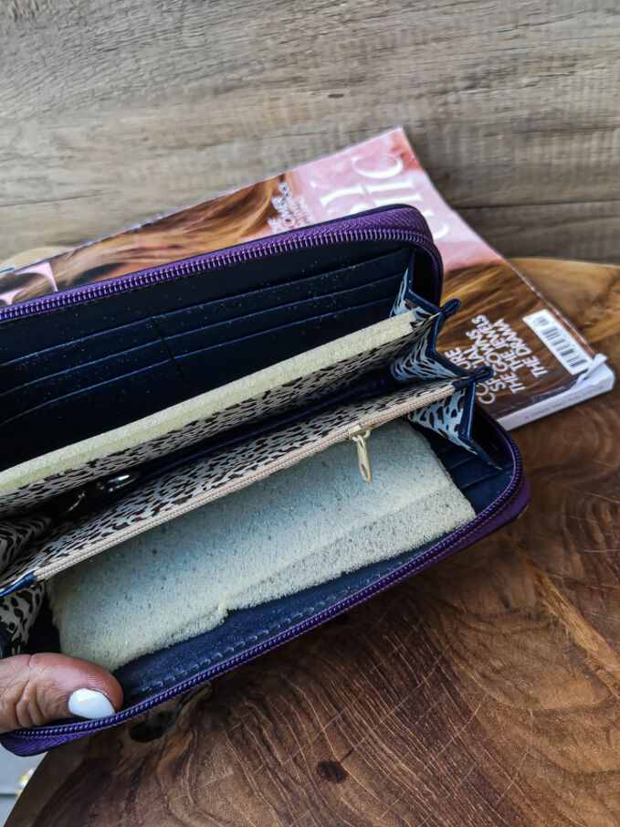 Krásne veľké peňaženky z ekokože so striebornými niťmi. Peňaženka má priehradky na karty!