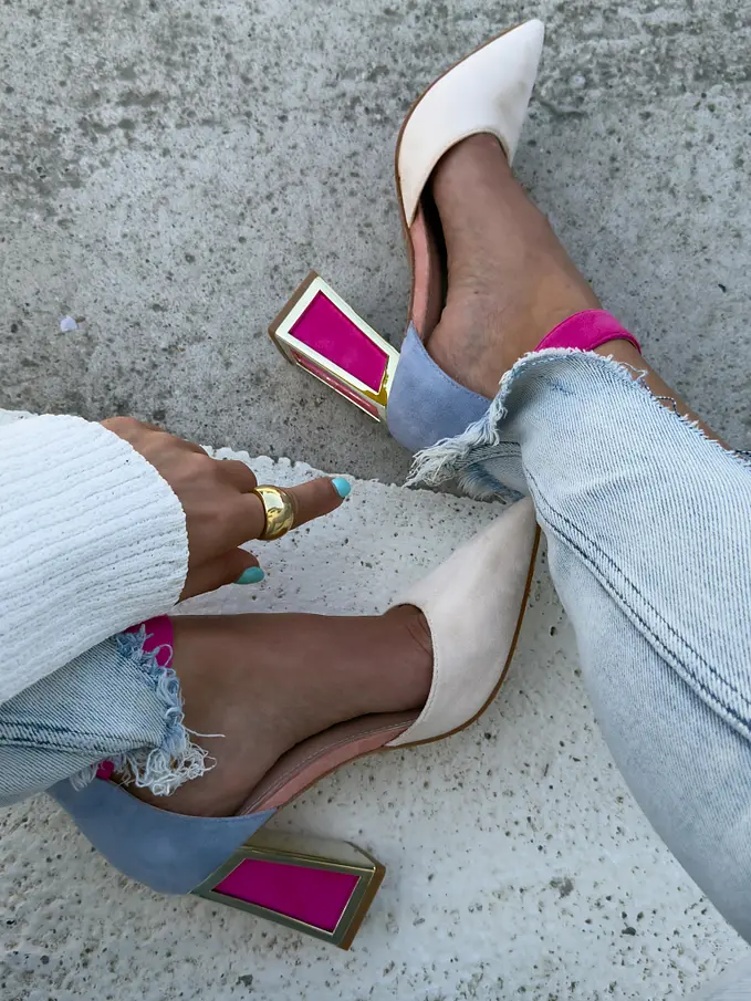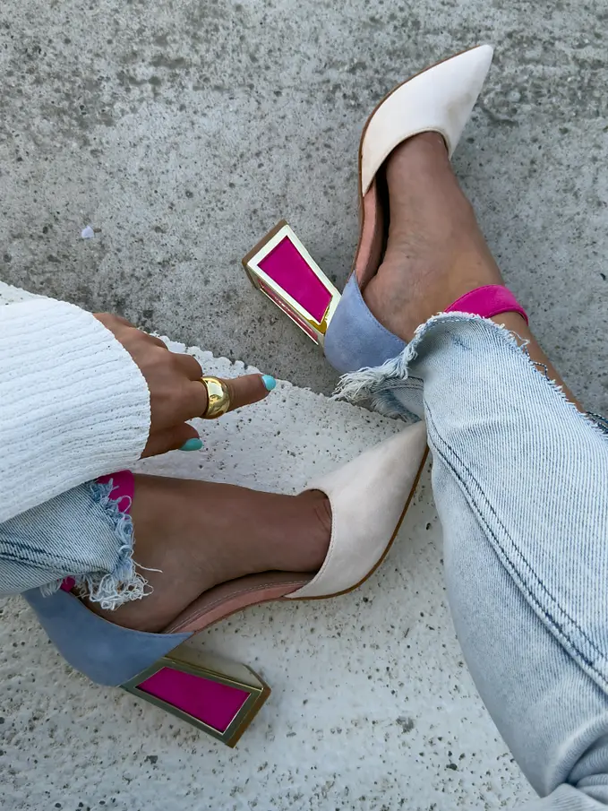 Veľkosti zodpovedajú klasickému európskemu číslovaniu. Modelka nosí veľkosť 38 a rovnakú veľkosť mala obutú i pri fotení.