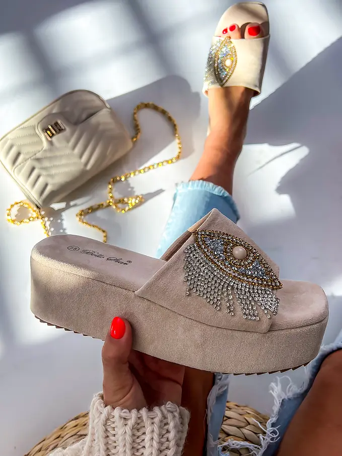 Elegantné dámske šľapky na každú príležitosť. Sú zdobené kamienkami.
