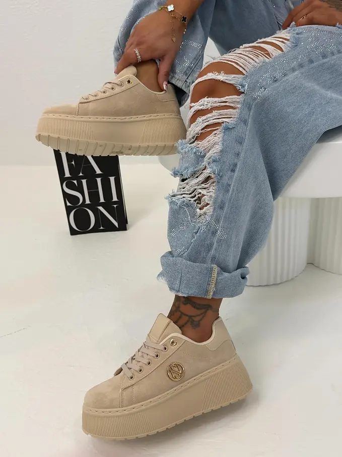 Platformové semišové tenisky so zlatými aplikáciami JANELA