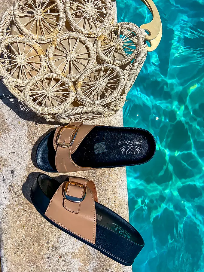 Platformové šľapky so zlatou ozdobou EASTON-