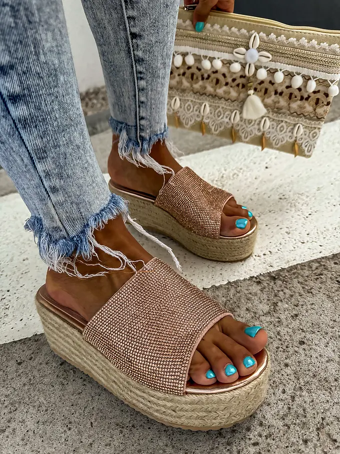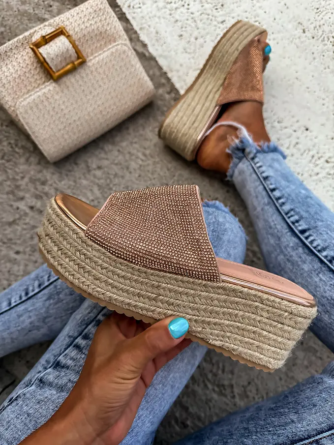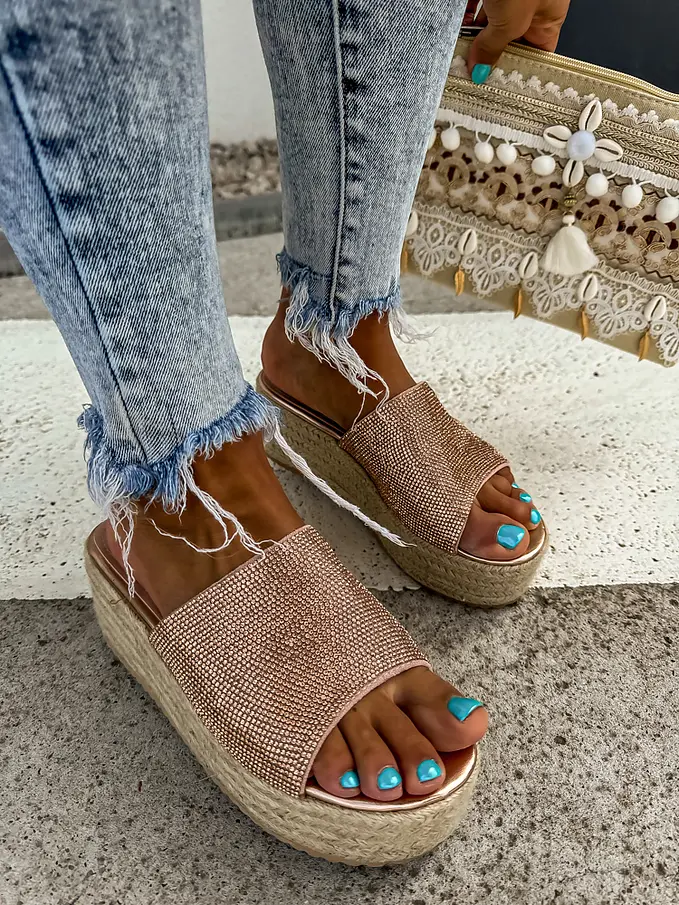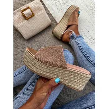 Elegantné platformové sandále zdobené kamienkami. Sandále sú na suchý zips.