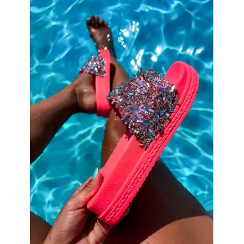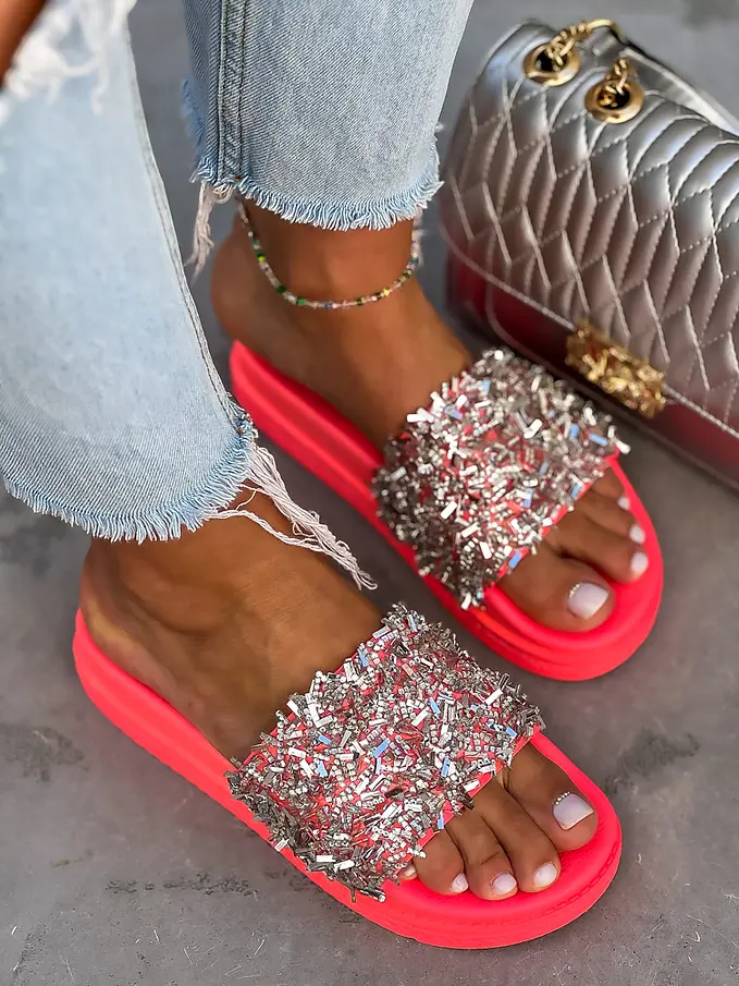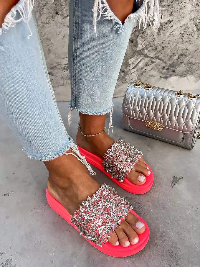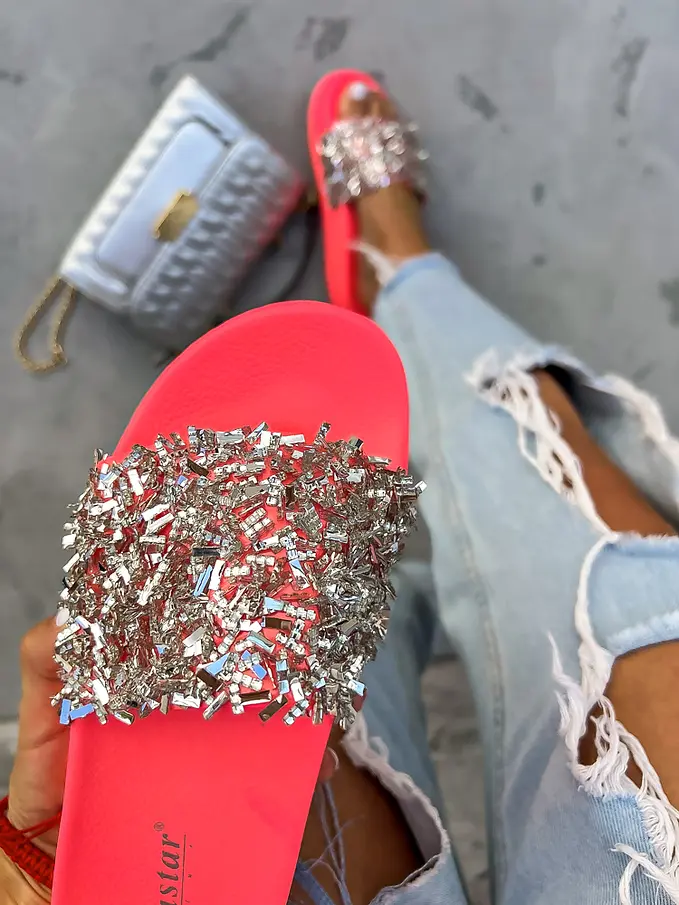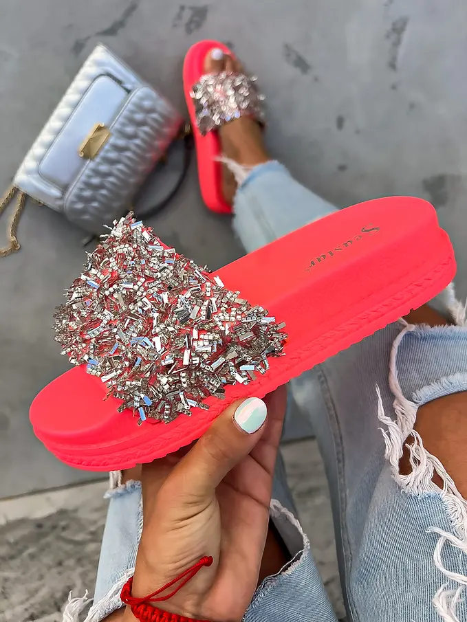 Platformové šľapky zdobené kamienkami RONY-