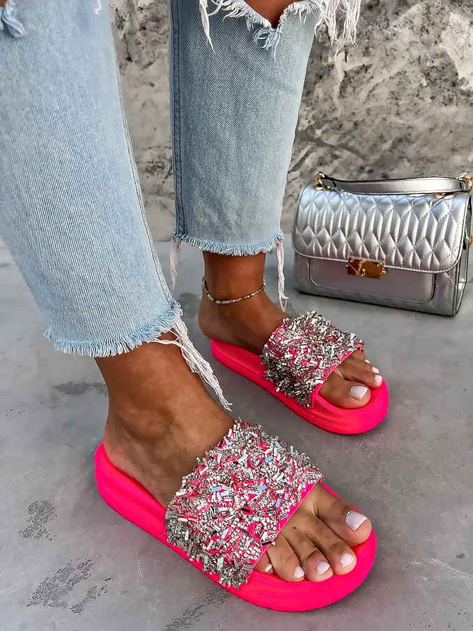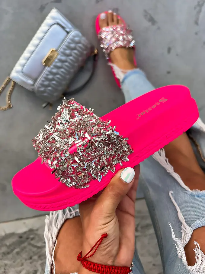Platformové šľapky zdobené kamienkami RONY-