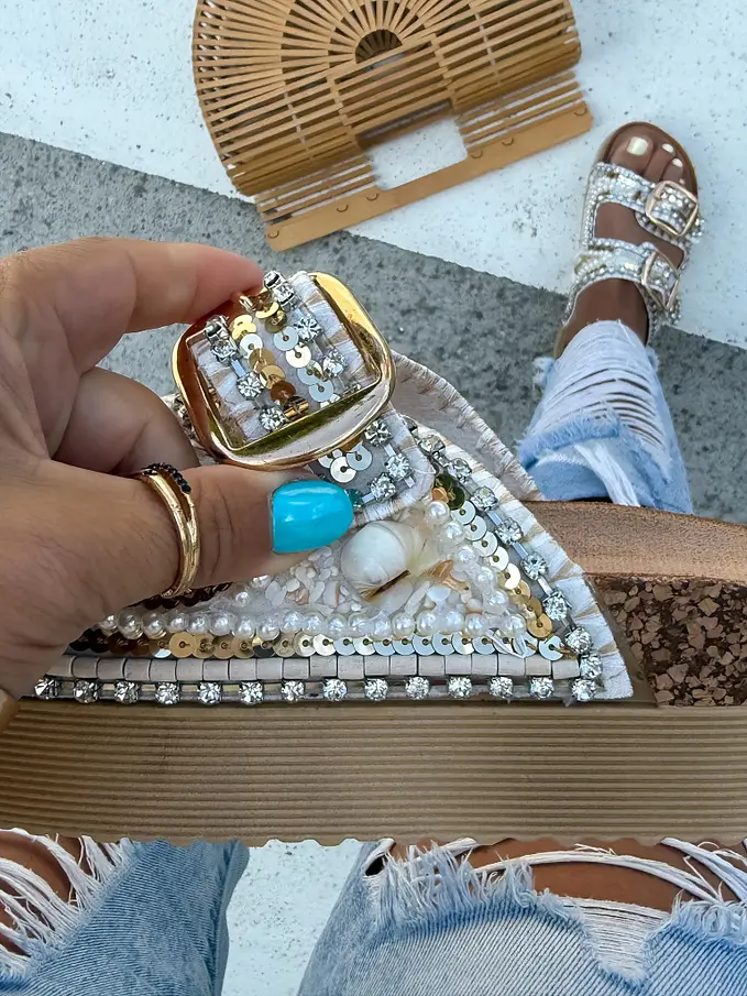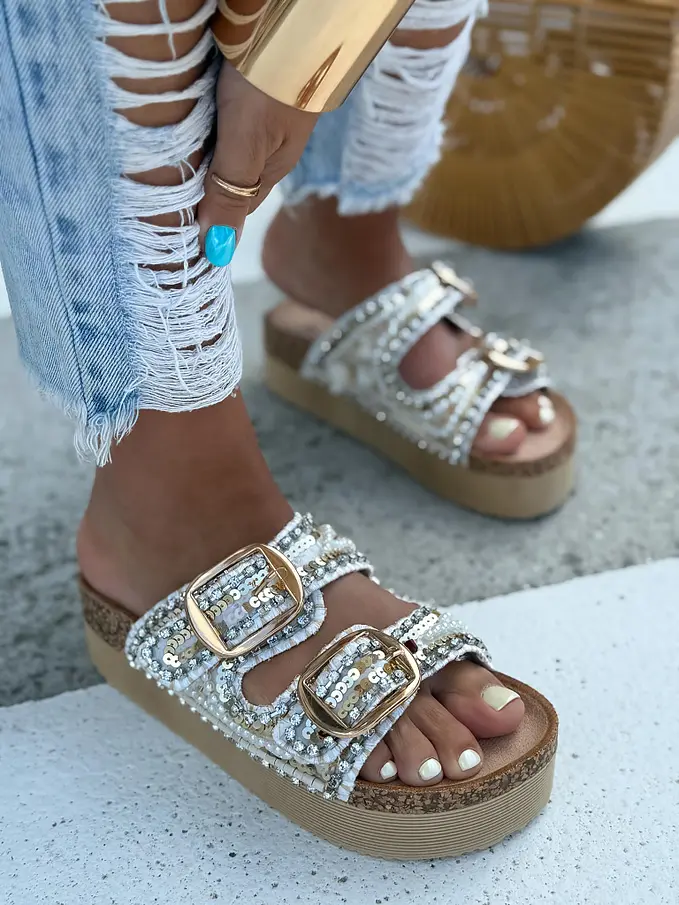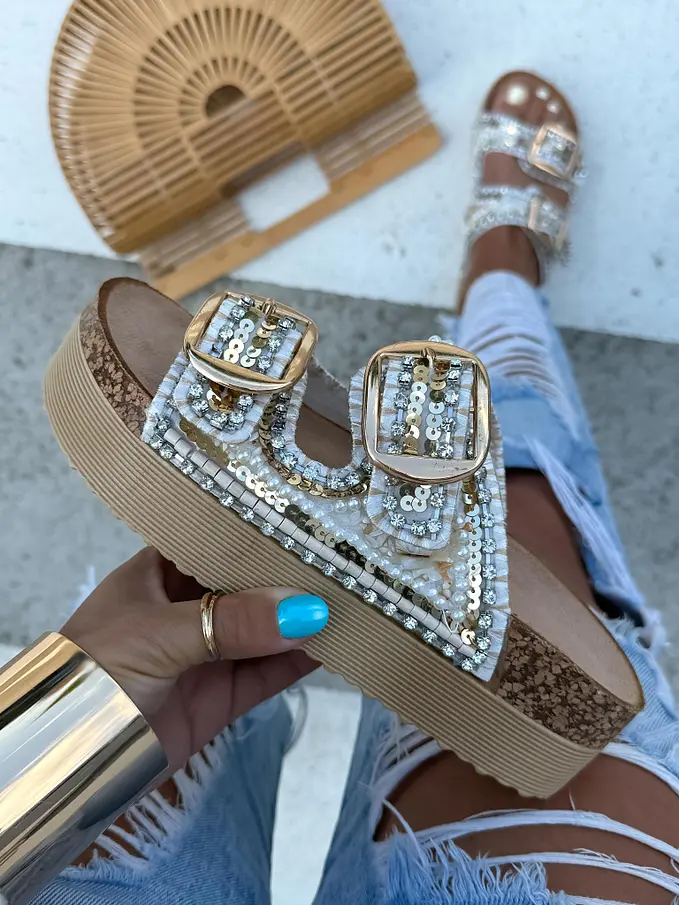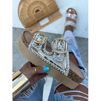 Ukážte aj vy, že máte radi štýlové kúsky! Trendové šľapky budú hitom sezóny, ktoré vám budú všetci závidieť. Spona na šľapkách má zlatú farbu.