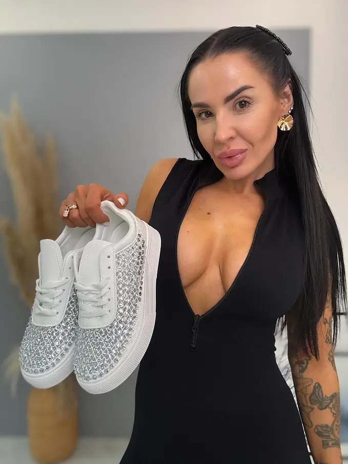Veľkosti zodpovedajú klasickému európskemu číslovaniu. Modelka nosí veľkosť 38 a rovnakú veľkosť mala obutú i pri fotení.