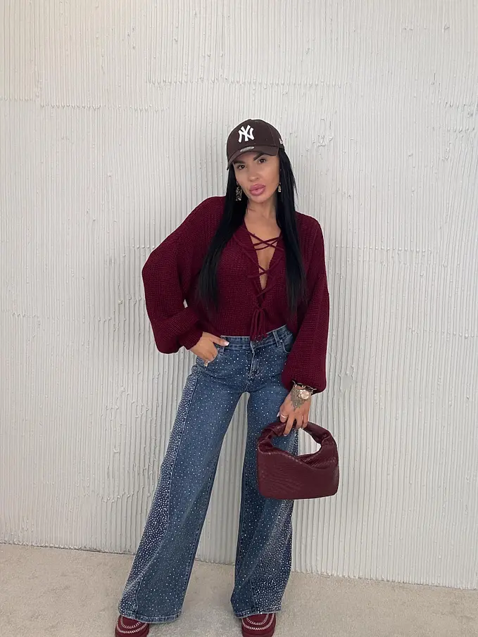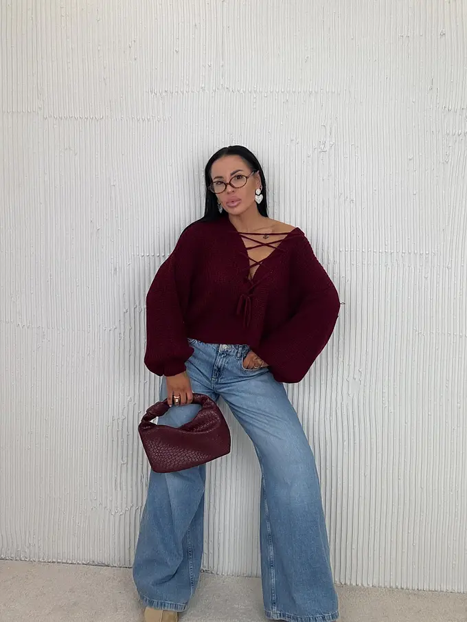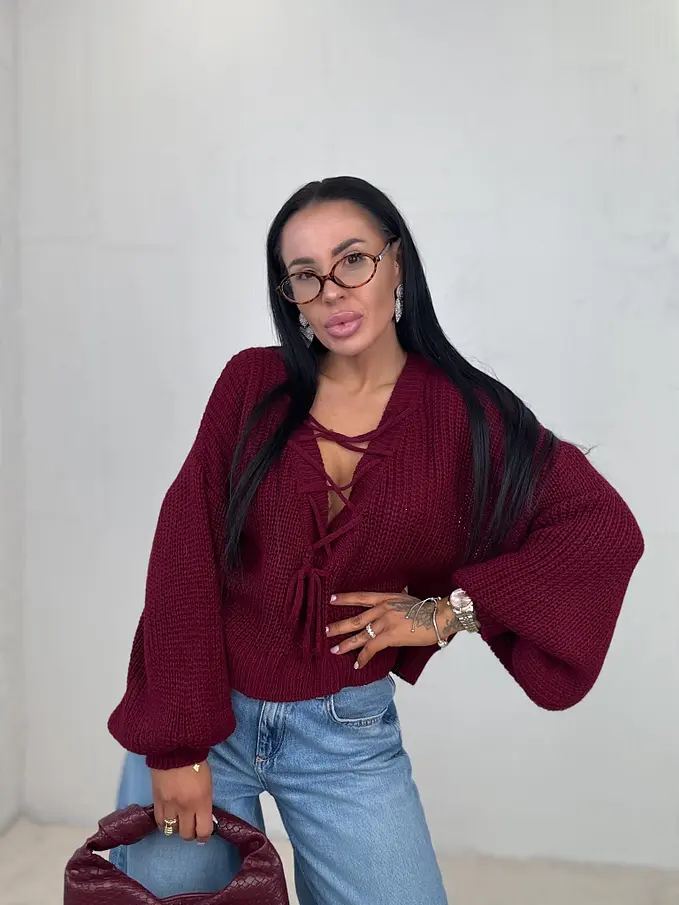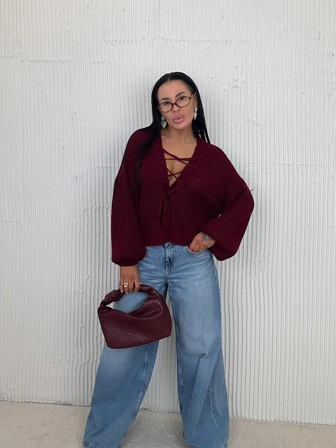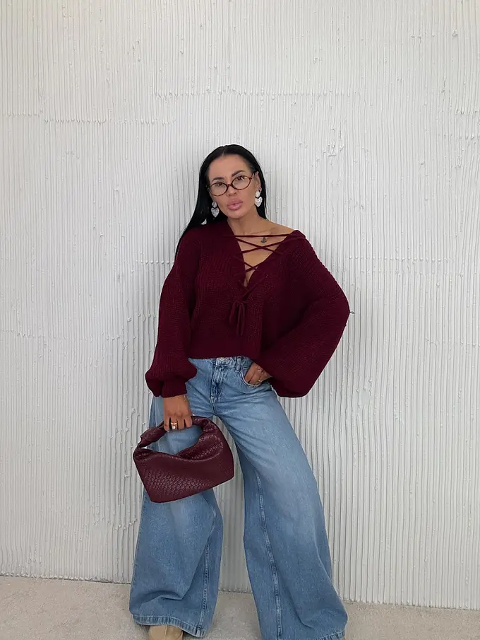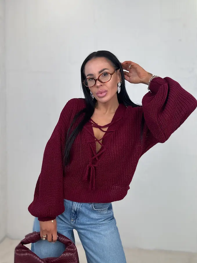 Pletený pulóver so šnurovaním vpredu ZAFIRA