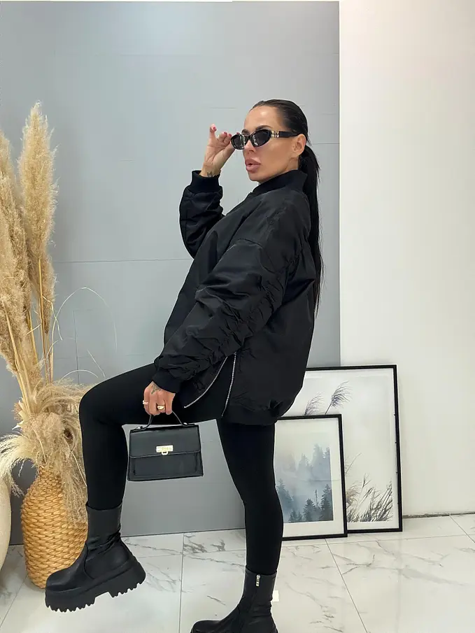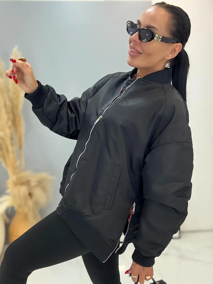 Kabát je vyrobený z príjemného materiálu. Zips má striebornú farbu.