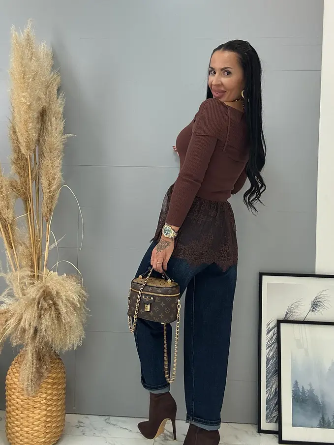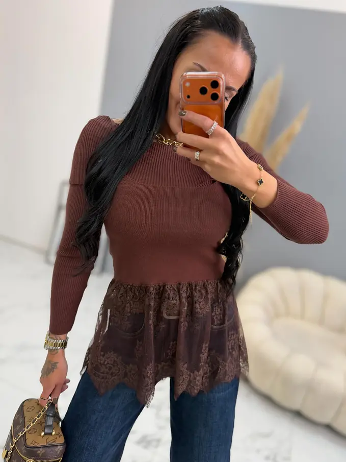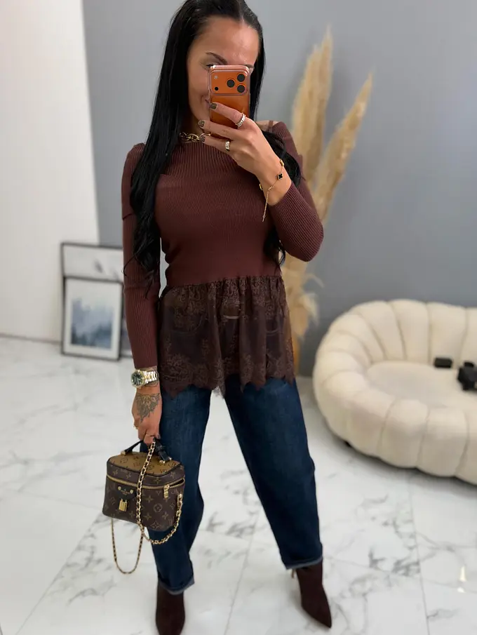 Dámsky pulóver a čipkovaný top z príjemného elastického materiálu.