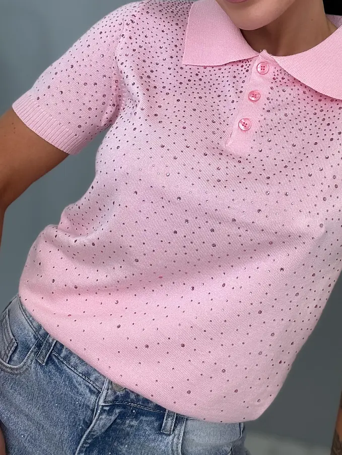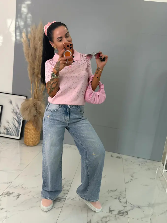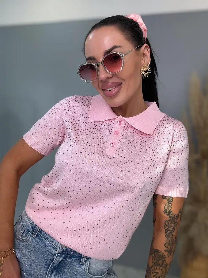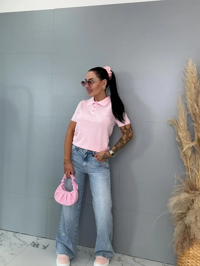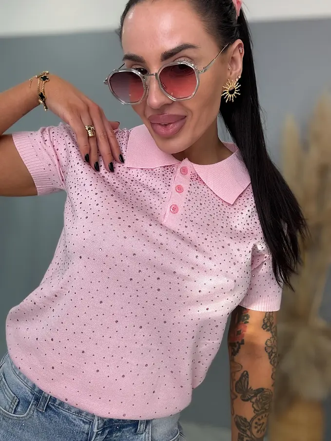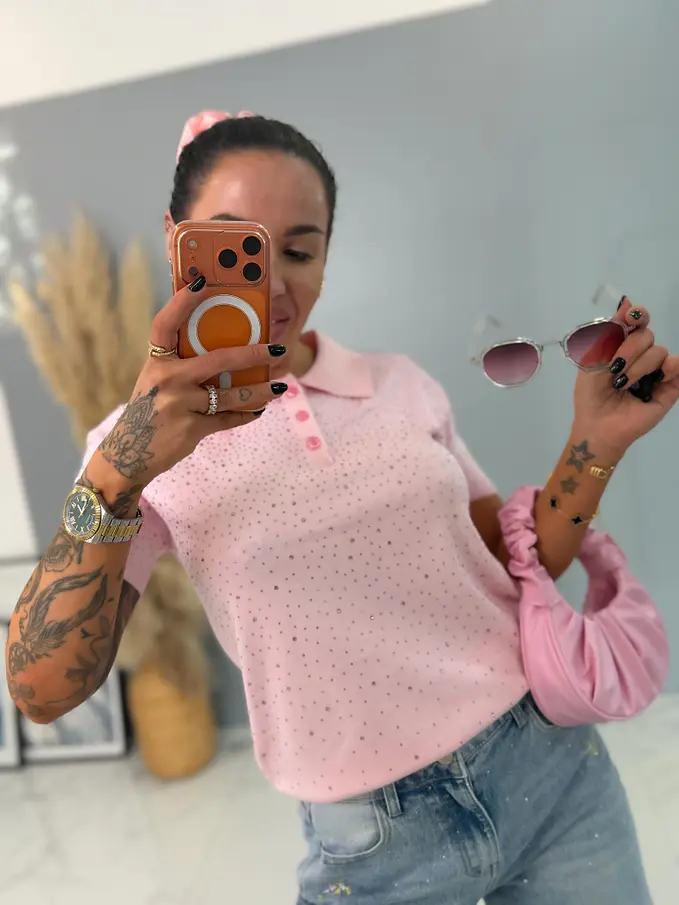 Pulóver s gombíkovou légou zdobený kamienkami LUCIE