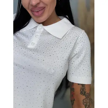 Pulóver s gombíkovou légou zdobený kamienkami LUCIE