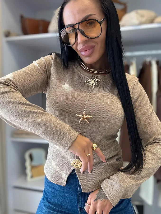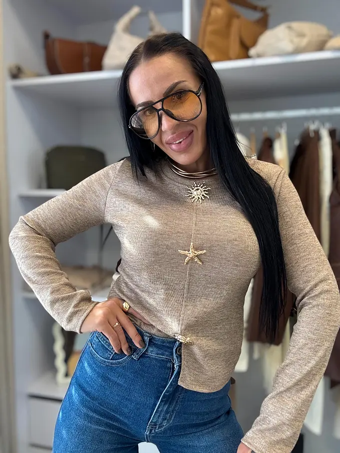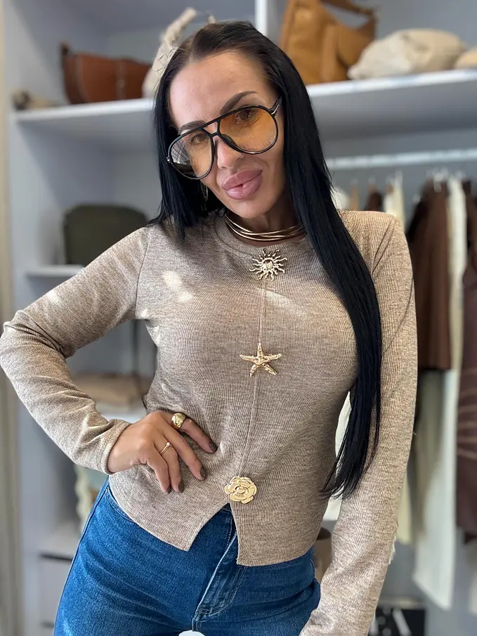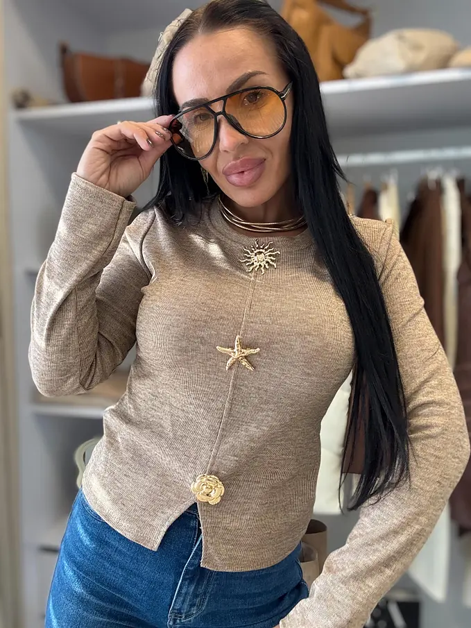 Pulóver so zlatou ozdobou KARMELA