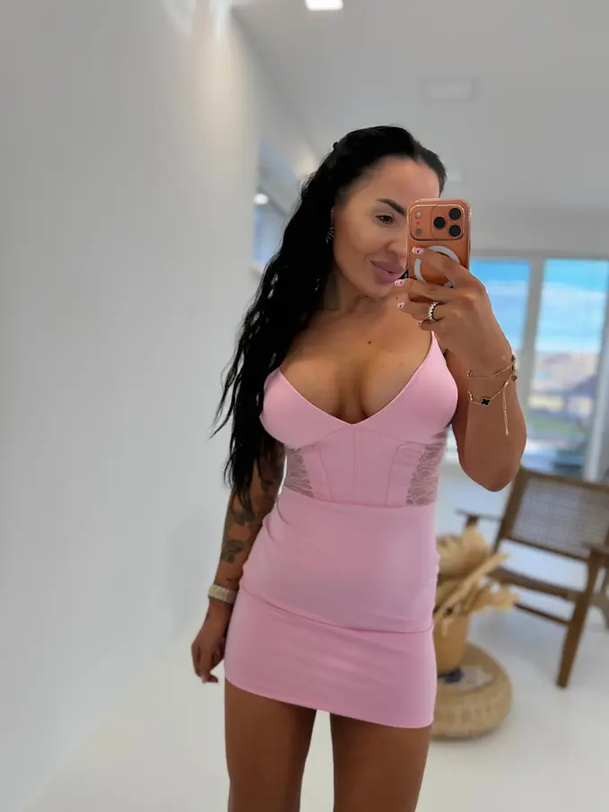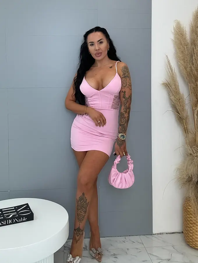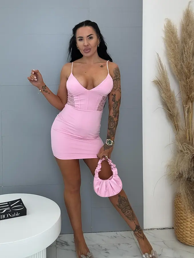 Ramienkové minišaty zdobené čipkou s vypchávkami RENEIA